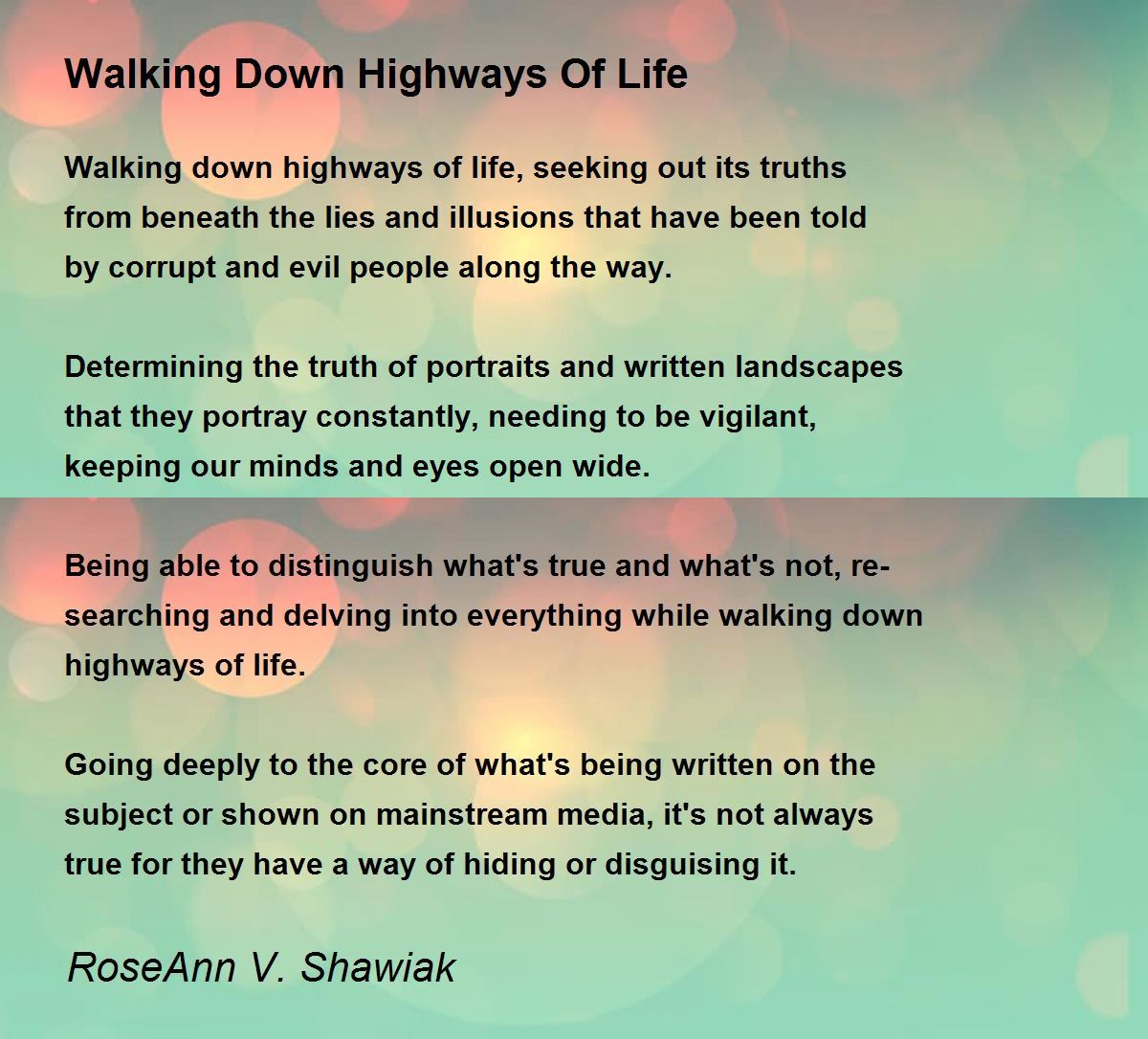 Walking down highways of life, seeking out its truths