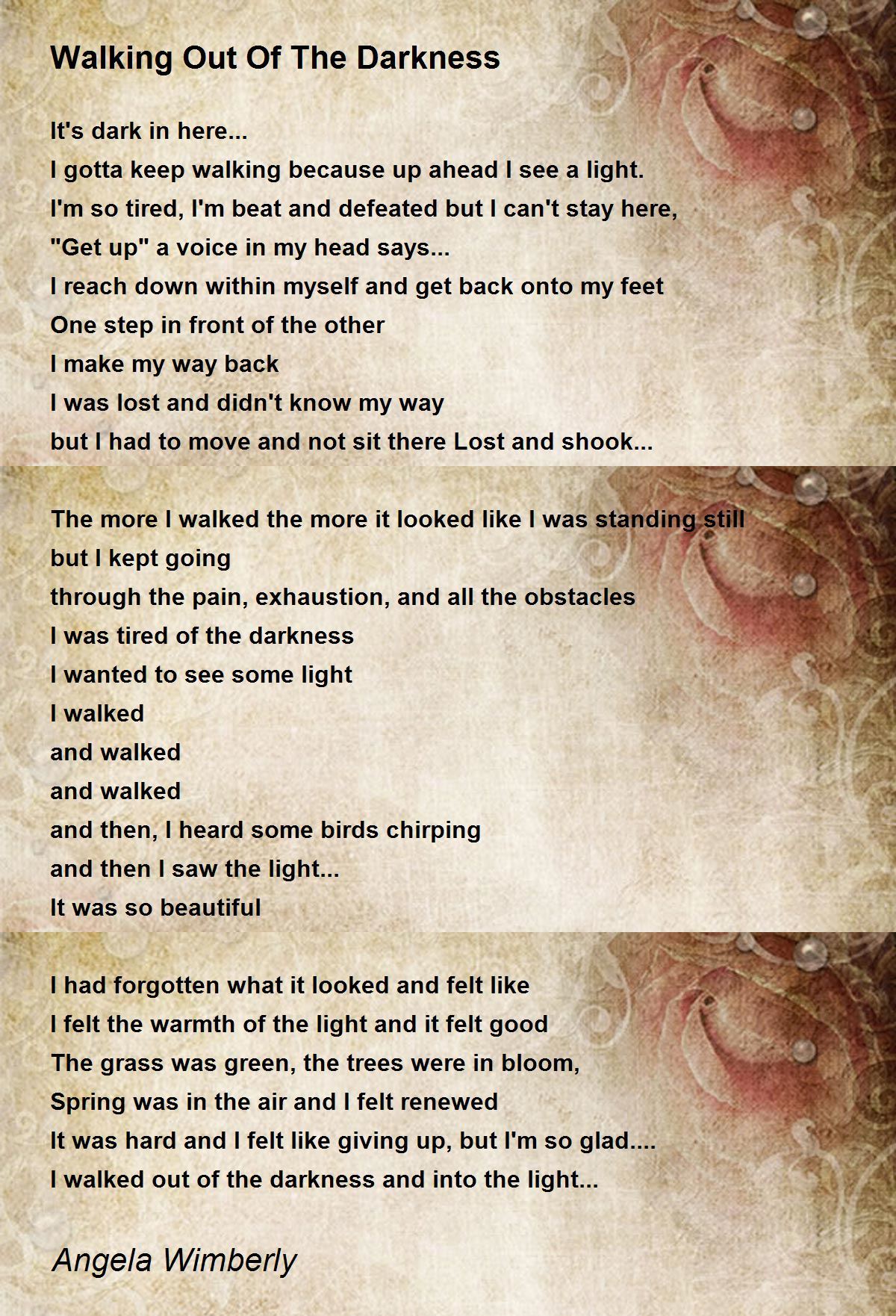 and then, I heard some birds chirping and then I saw the light... It was so beautiful....gaining a new purpose and a new direction and destination in life . so picturesqly u have portrayed it. thank u dear poetess. tony