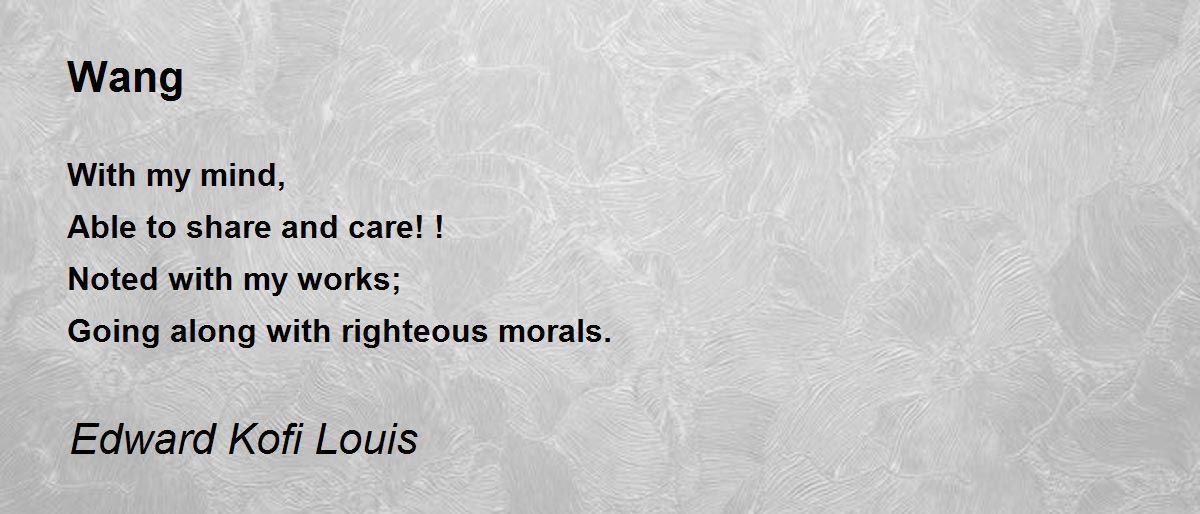 With my mind, Able to share and care! ! Noted with my works; Going along with righteous morals.