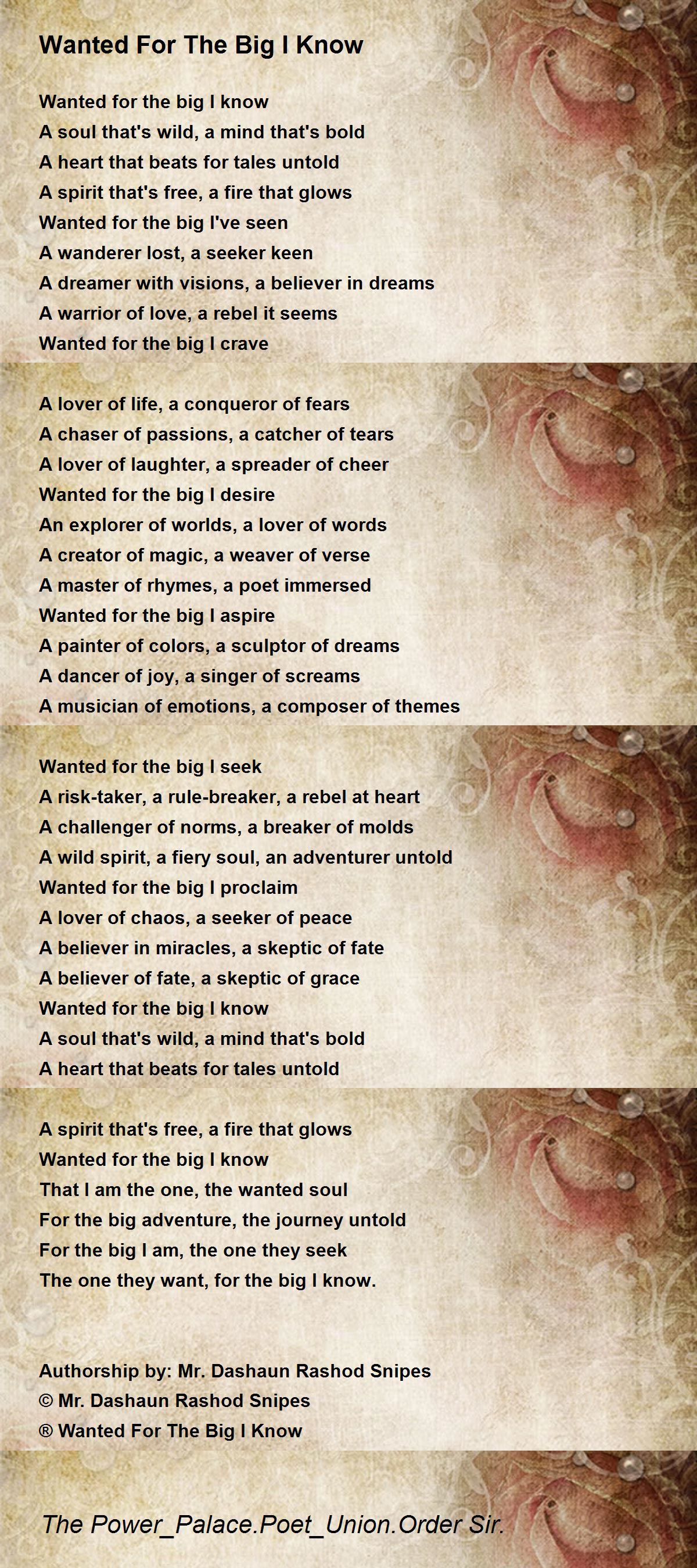 ®️ Wanted For The Big I Know