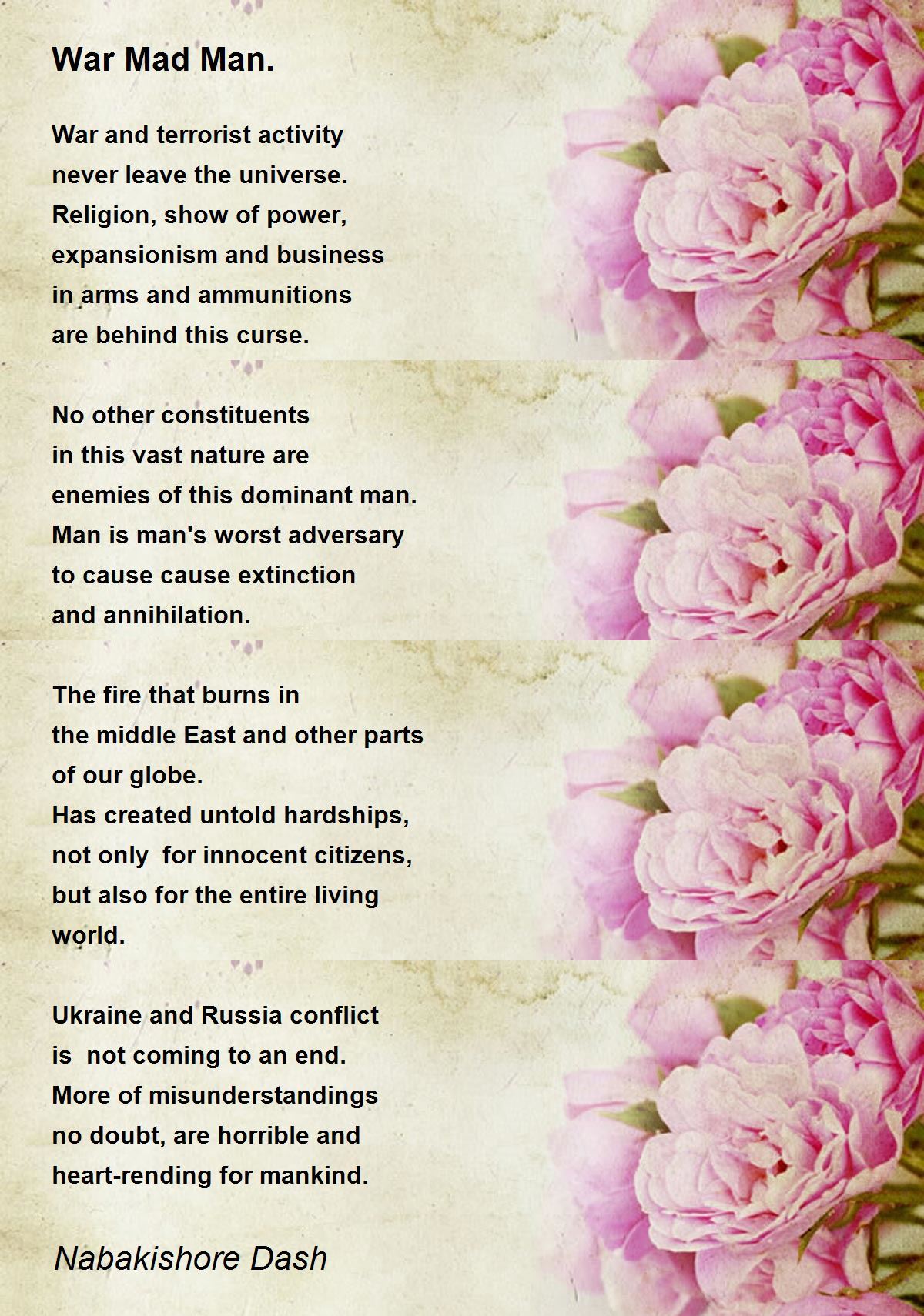 So sad but so true. Man is the creator of all problems that bring humanity to its lowest lows. A meaningful and insightful poem