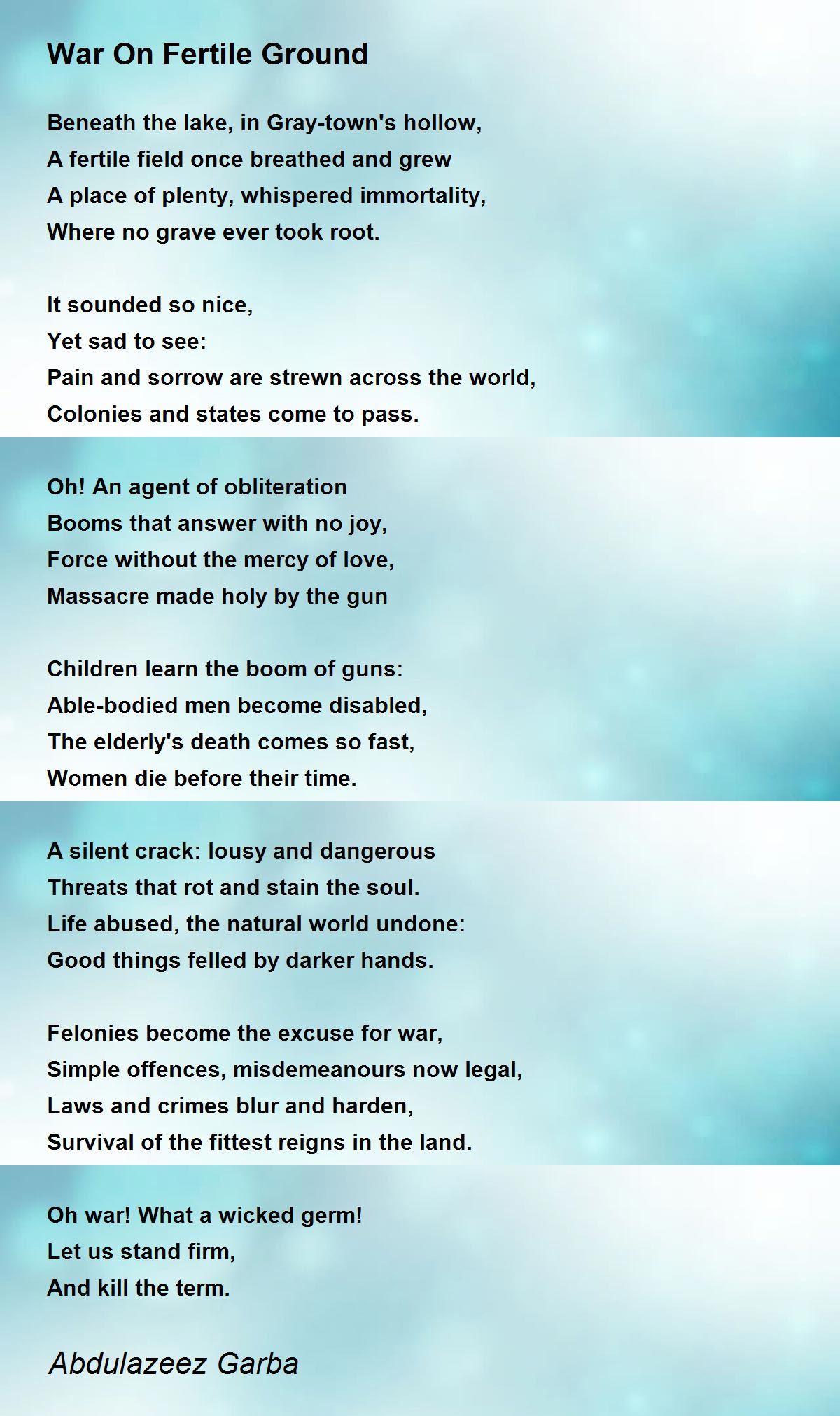 Oh war! What a wicked germ!