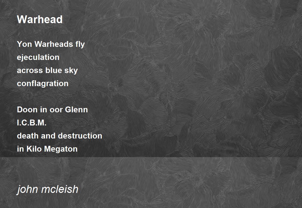 Yon Warheads fly ejeculation across blue sky conflagration Doon in oor Glenn I.C.B.M. death and destruction in Kilo Megaton