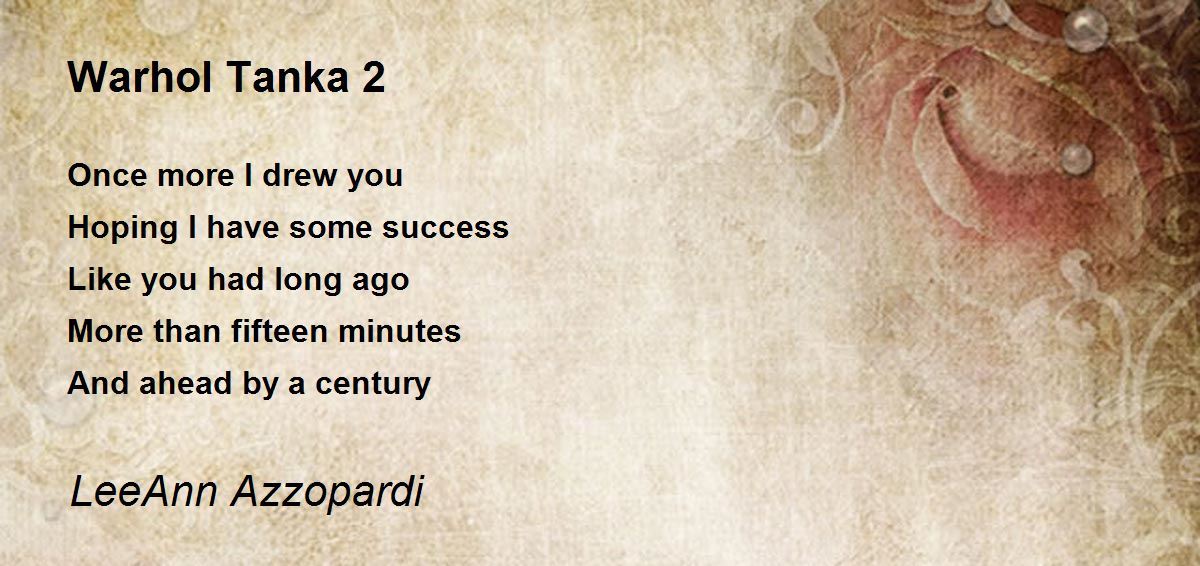 Great tanka, LeeAnn. I remember when Warhol first came to visit Canada, he had absolutely no success. Sometimes it's all about when you find those 15 minutes. A fantastic poem, LeeAnn!