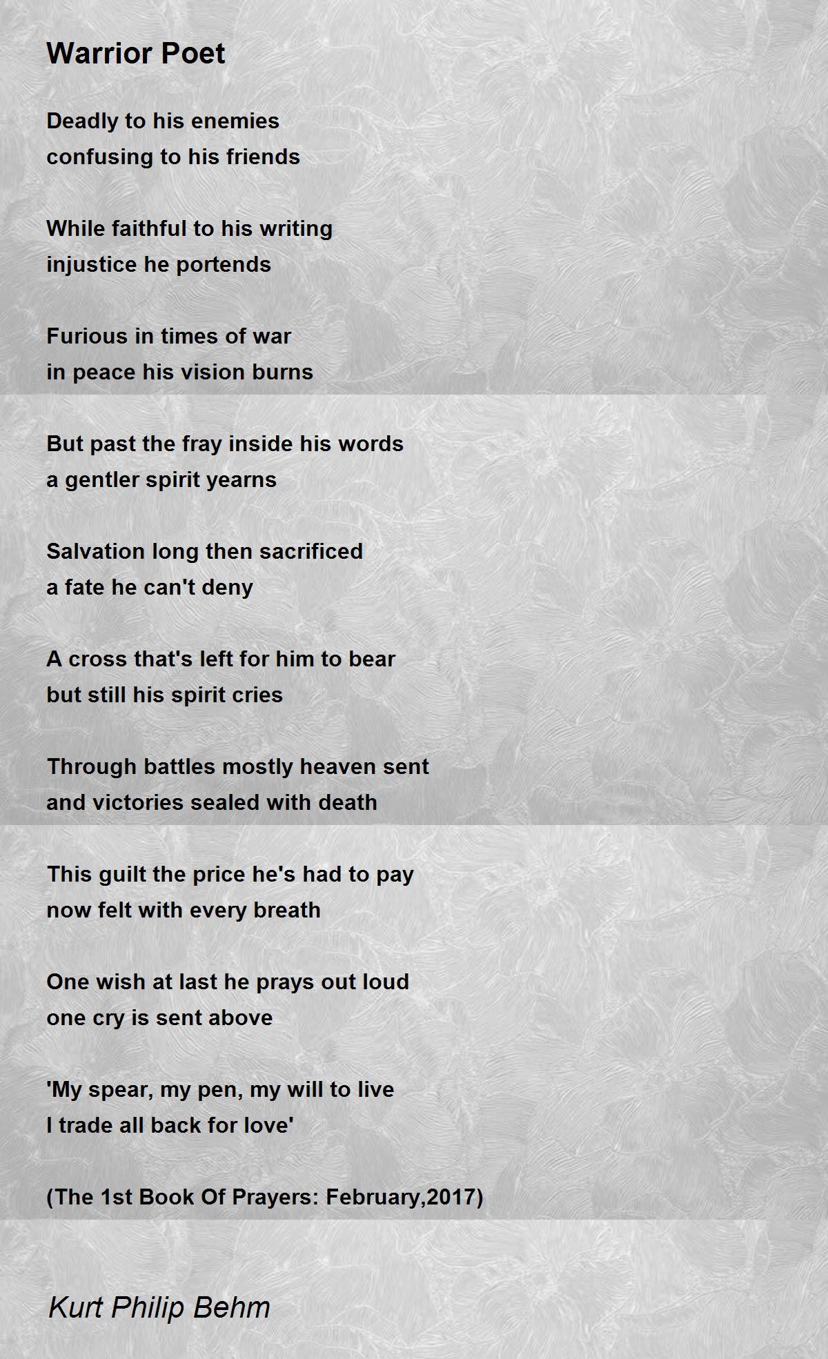 'My spear, my pen, my will to live