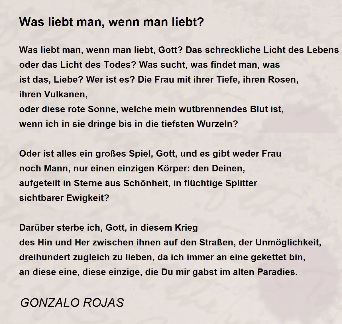 ist das, Liebe? Wer ist es? Die Frau mit ihrer Tiefe, ihren Rosen, ihren Vulkanen,