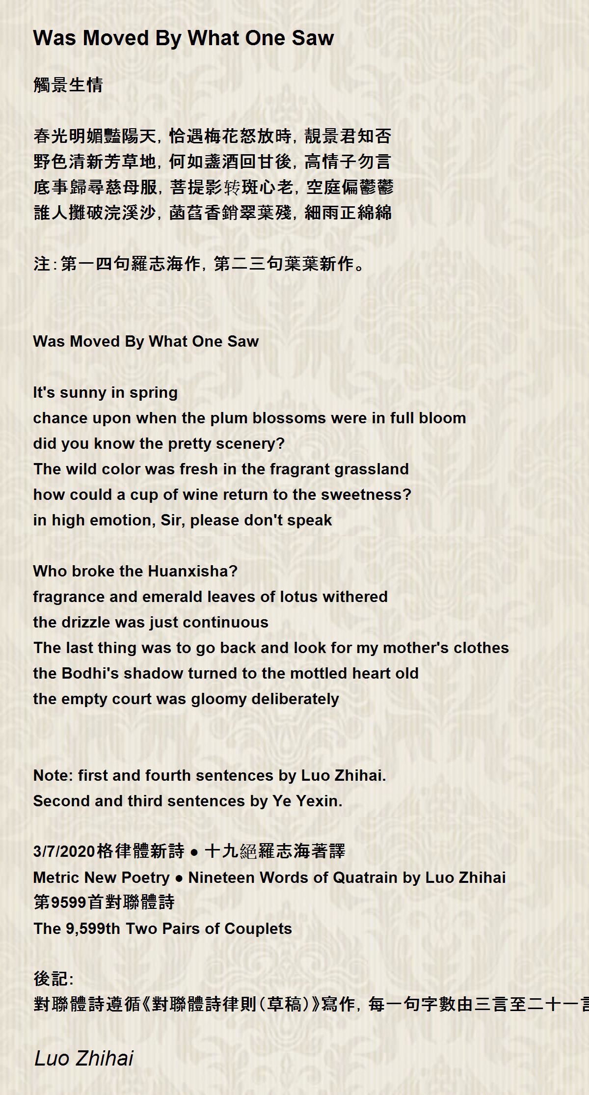 Metric New Poetry ● Nineteen Words of Quatrain by Luo Zhihai