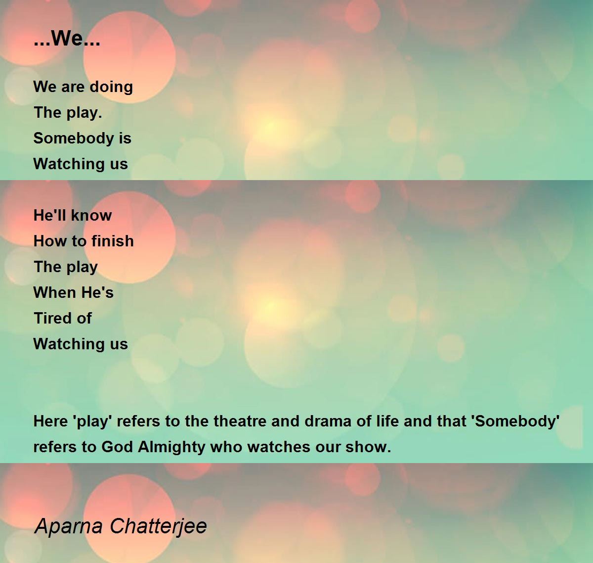 Here 'play' refers to the theatre and drama of life and that 'Somebody' refers to God Almighty who watches our show.