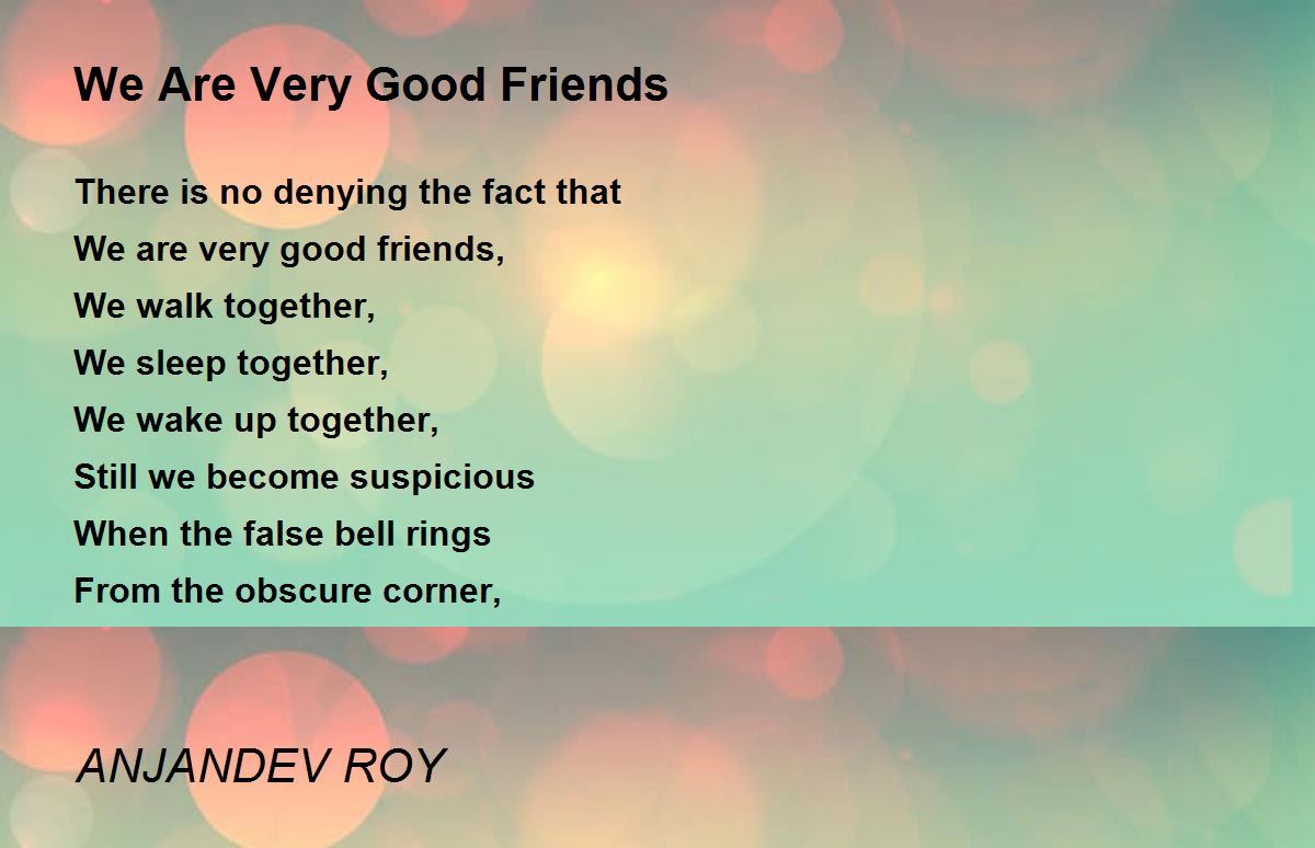We walk together/We sleep together/We wake up together till a drop of suspicion (poison) posions the glass of nectar of our friendship!