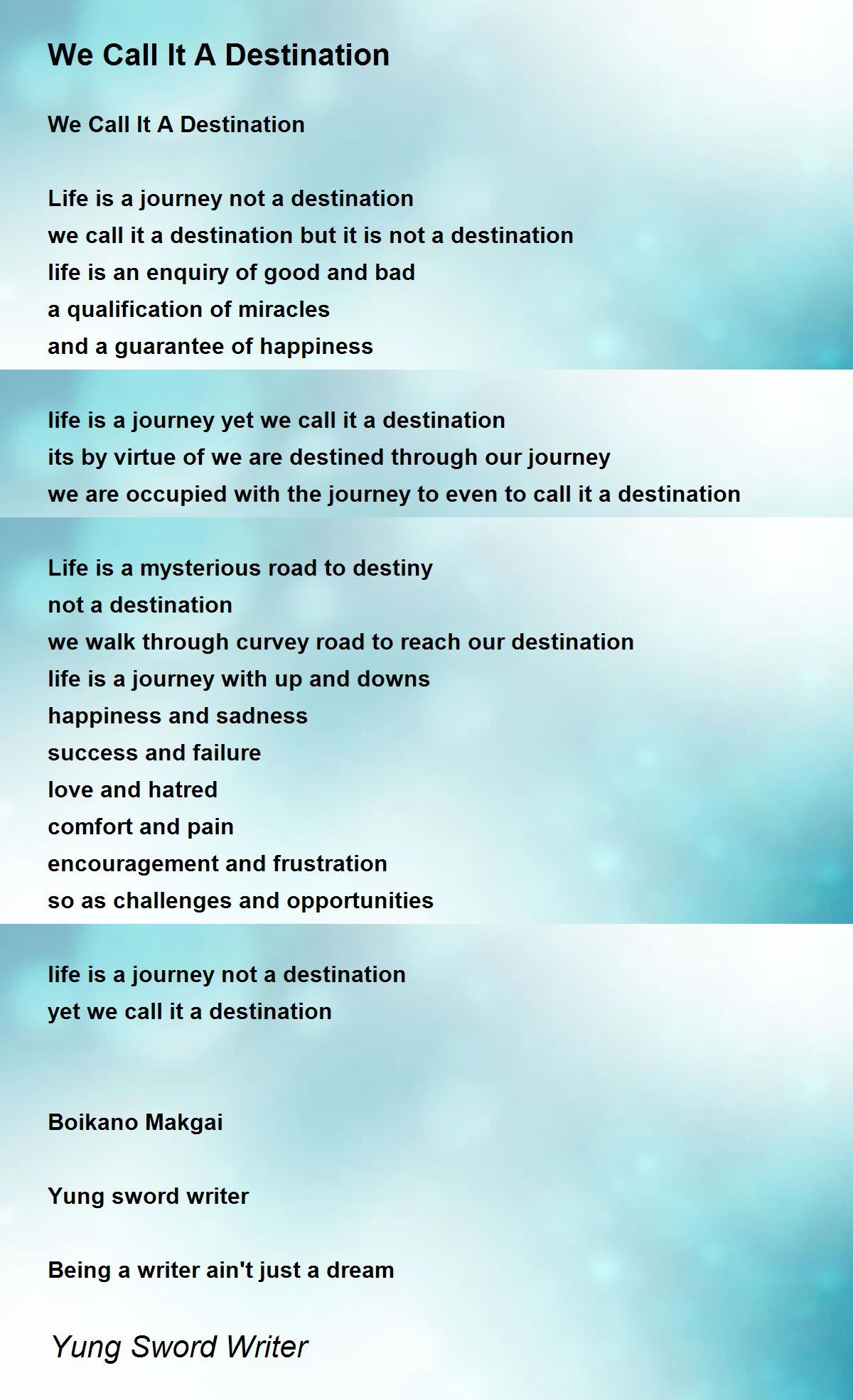 life is a journey yet we call it a destination
