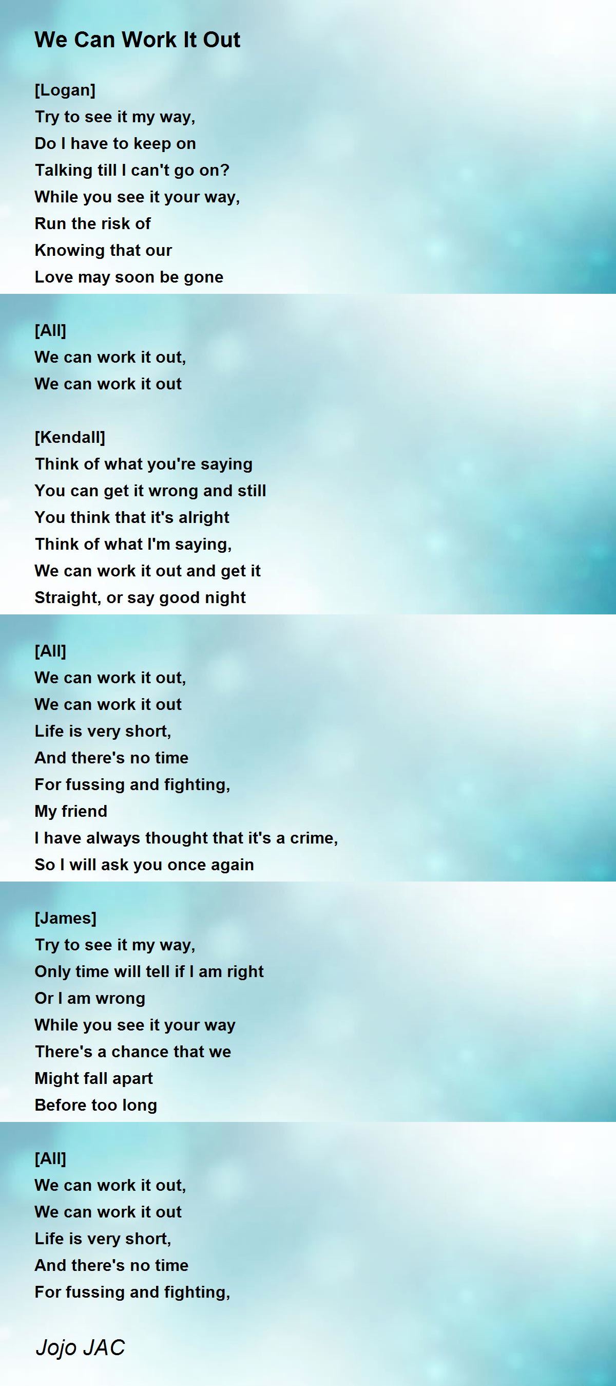 We can work it out,