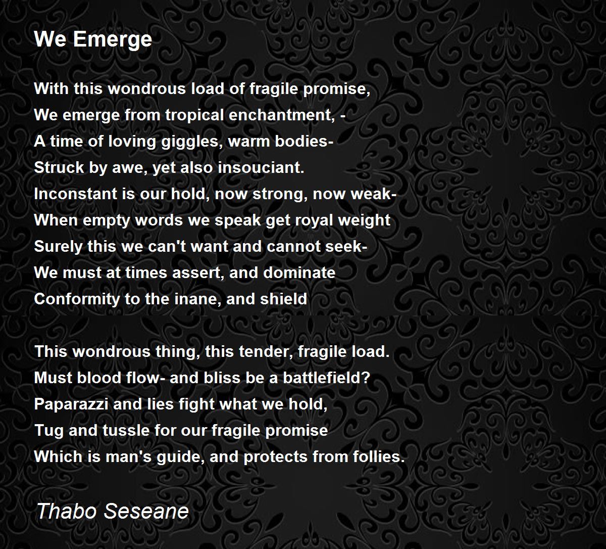 With this wondrous load of fragile promise,