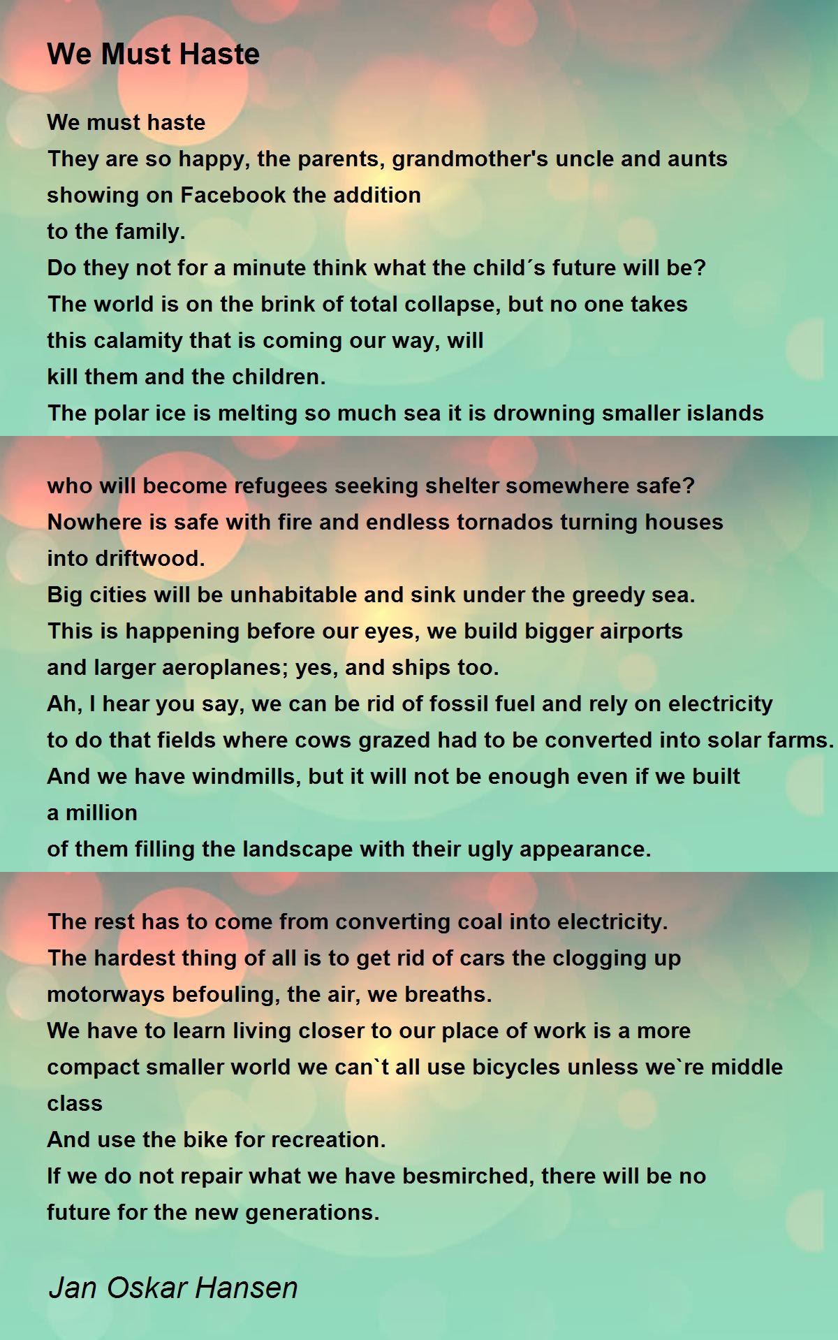 The world is on the brink of total collapse, but no one takes this calamity that is coming our way, will