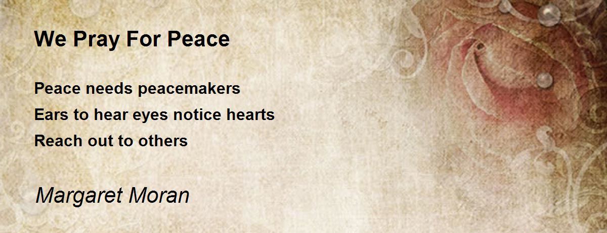 When we pray for peace, we also mean that peace needs peacemakers. Peacemakers are people who have ears to hear, eyes to notice, and hearts to reach out to others.