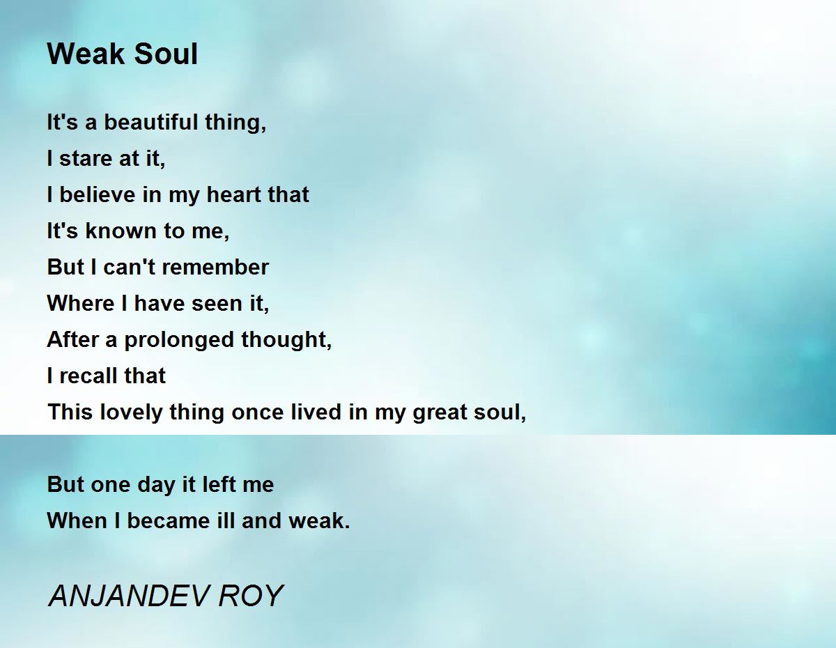 Weak soul! ! Trying to overcome! ! ! Thanks for sharing this poem with us.
