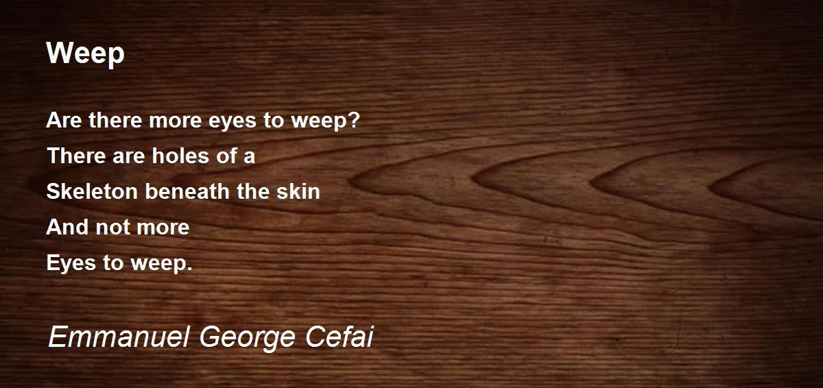 Are there more eyes to weep? There are holes of a Skeleton beneath the skin And not more Eyes to weep.