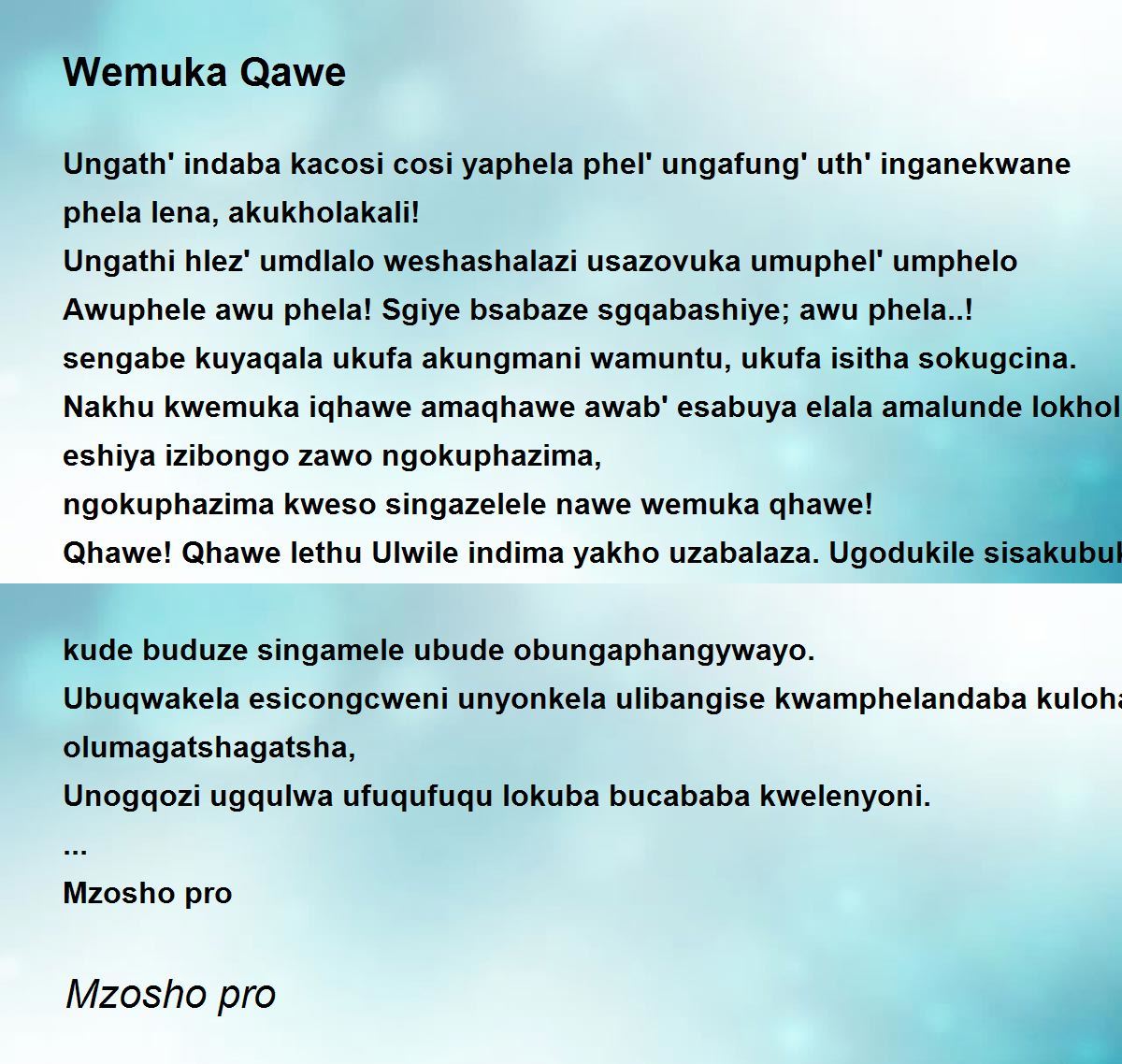ngokuphazima kweso singazelele nawe wemuka qhawe!