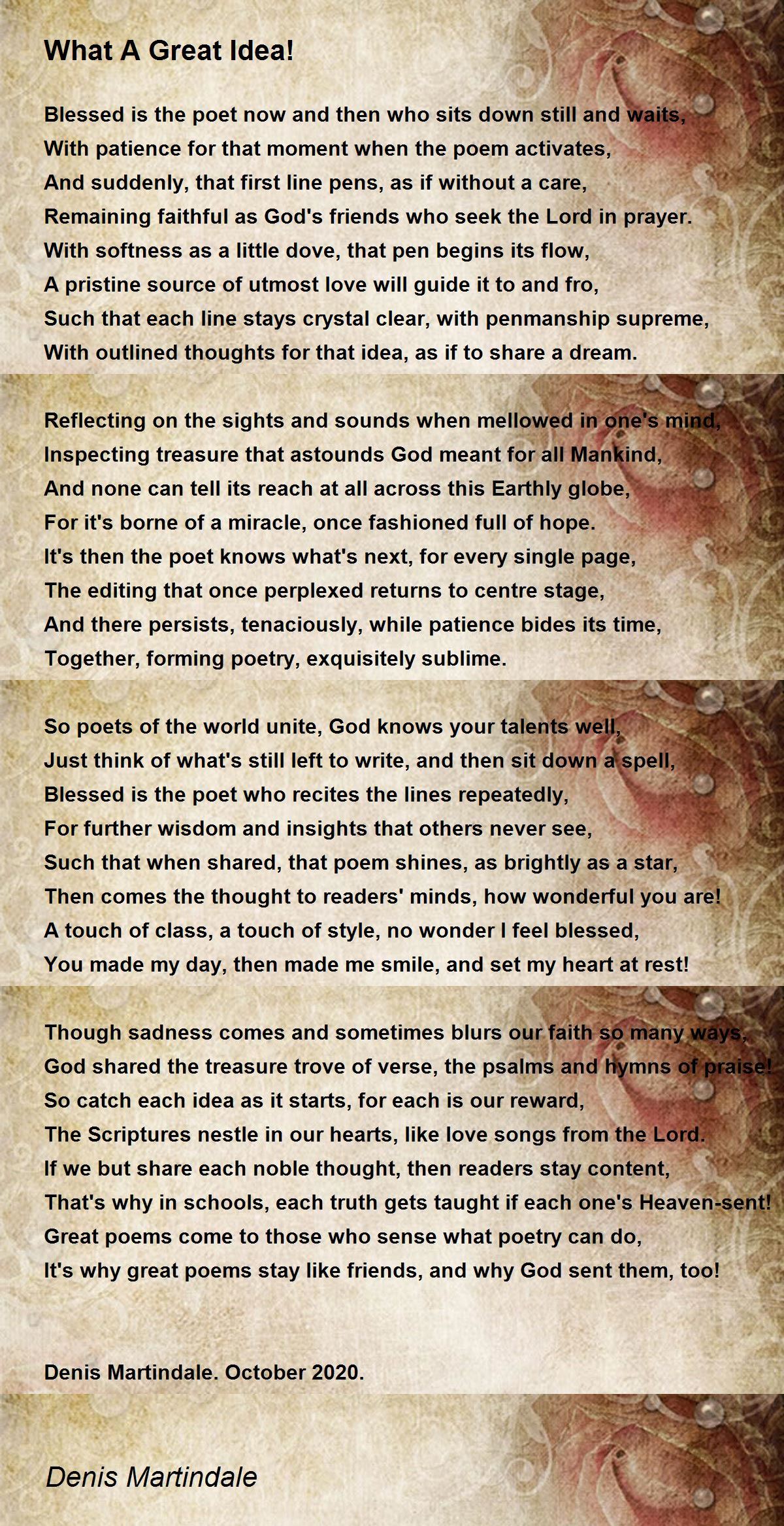 It's why great poems stay like friends, and why God sent them, too!