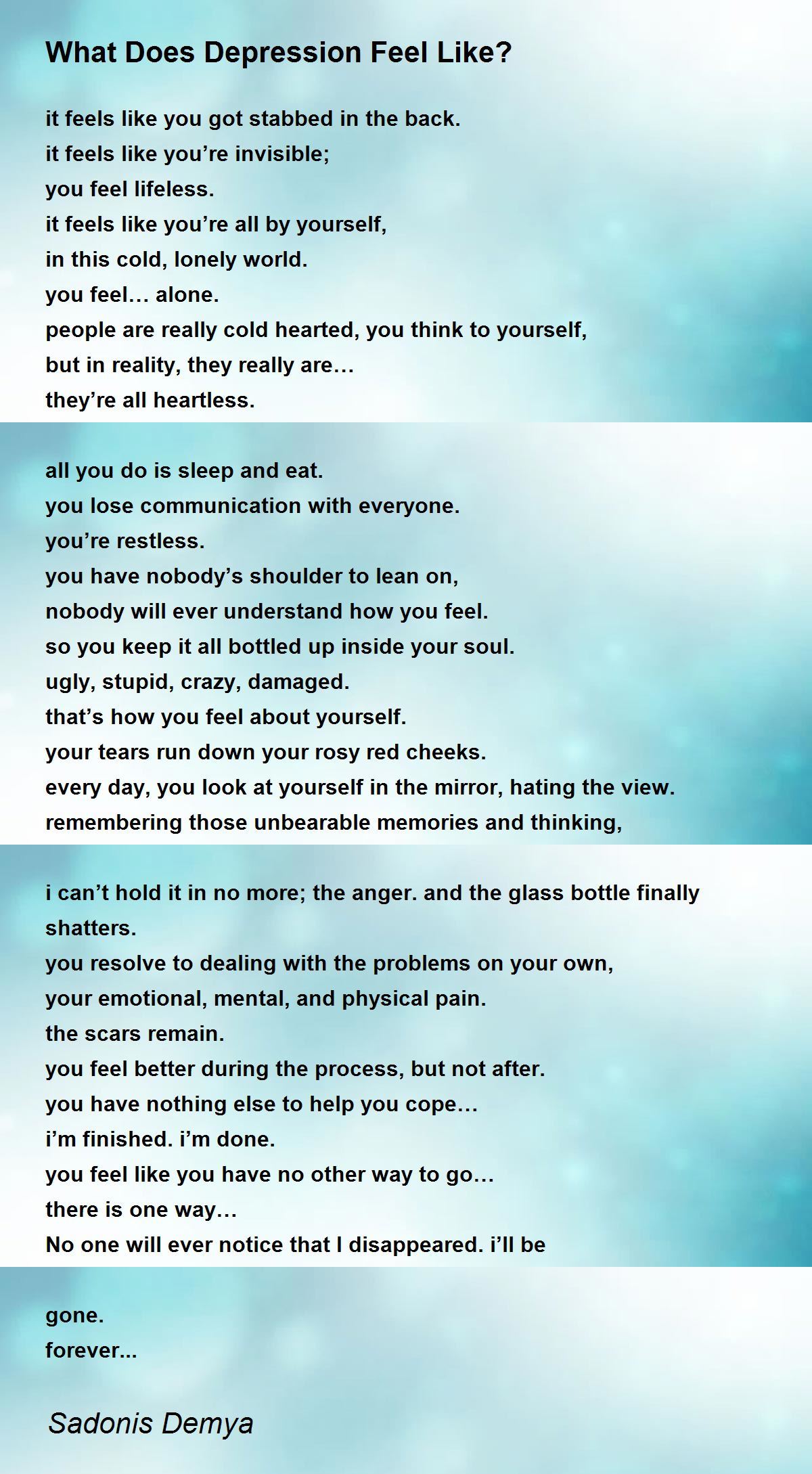 No one will ever notice that I disappeared. i’ll be