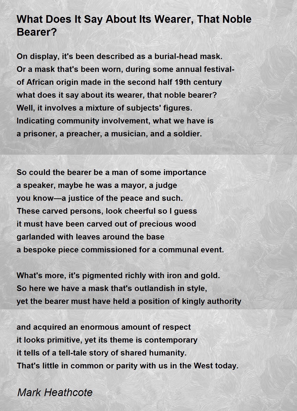 what does it say about its wearer, that noble bearer?