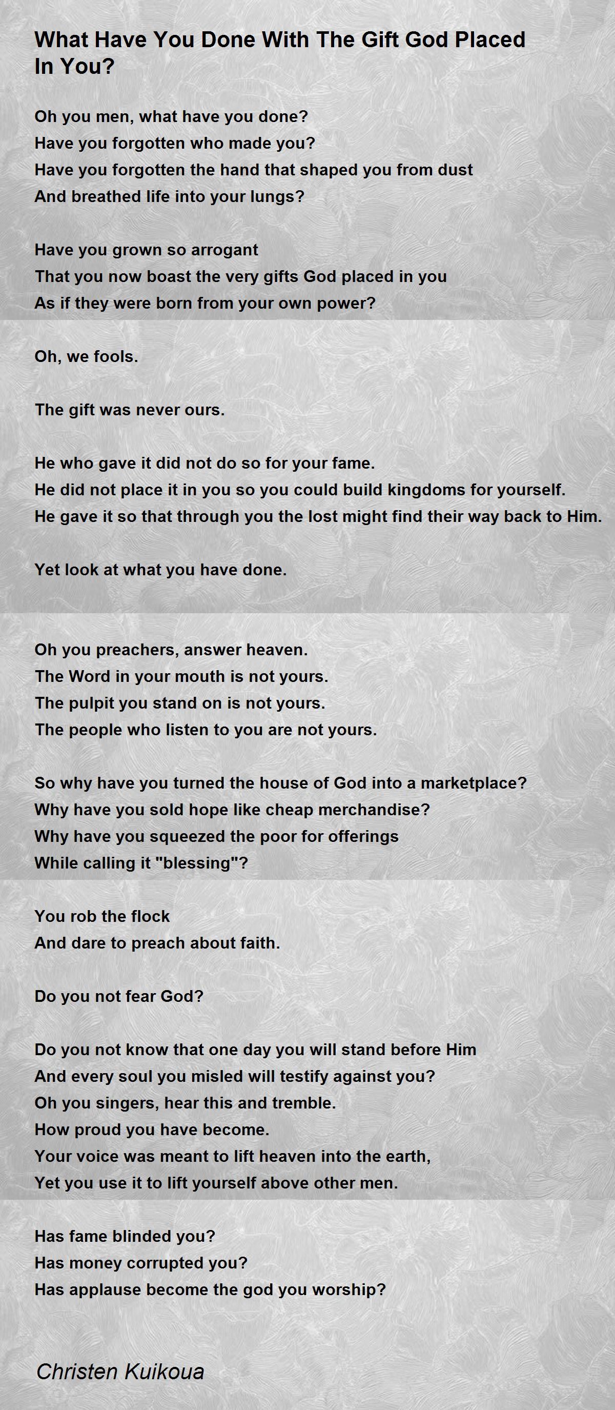 What have you done with the gift God placed in you?