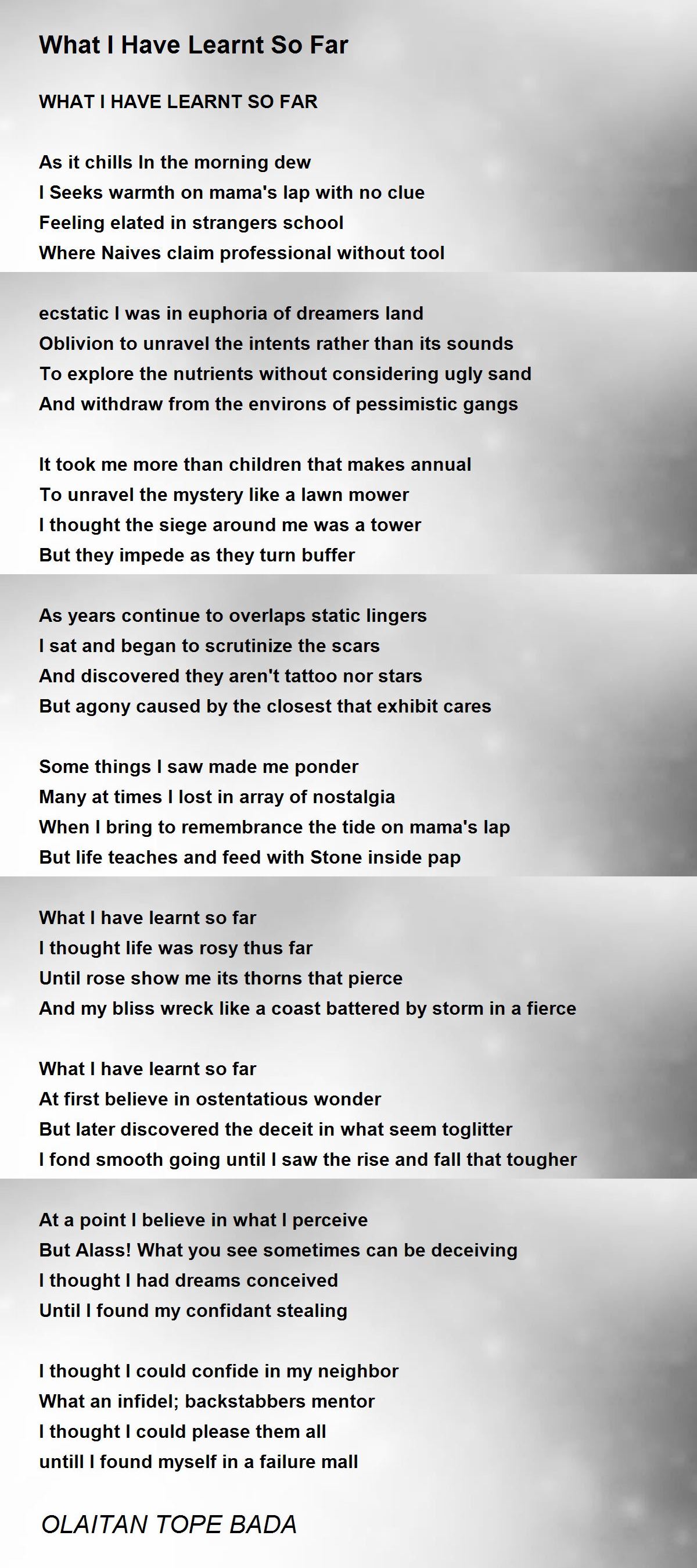 WHAT I HAVE LEARNT SO FAR