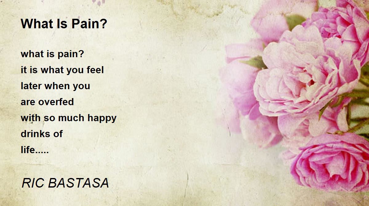 what is pain? it is what you feel later when you are overfed with so much happy drinks of life.....