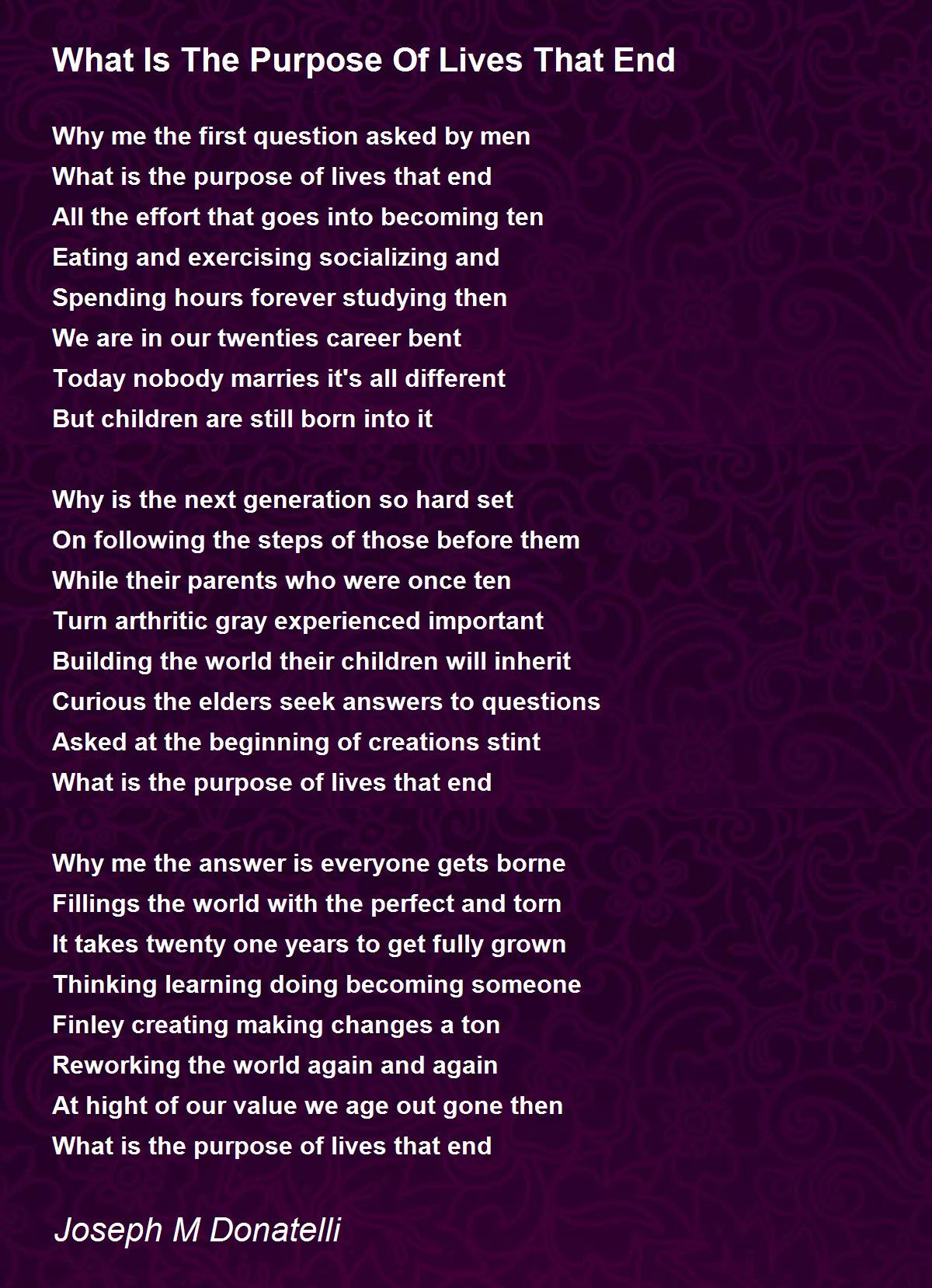 It takes twenty one years to get fully grown Thinking learning doing becoming someone..What i s the purpose of life..? searching for meaning is always a theme for a good poet. we all do that and question ourselves almost everyday. a great poem my dear poet. tony