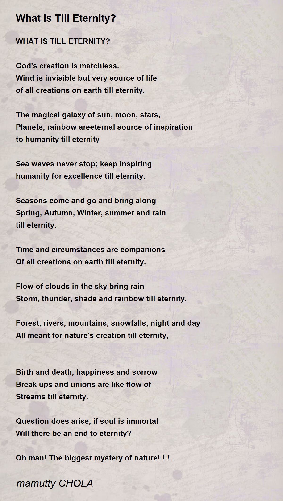 beautiful point of this poem- Birth and death, happiness and sorrow Break ups and unions are like flow of Streams till eternity/// nice thought