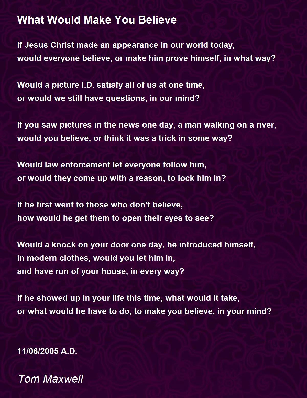 Great way to ask a fundamental question on faith. Hmm..at my door i would call 911 depending on whether he is black or white.