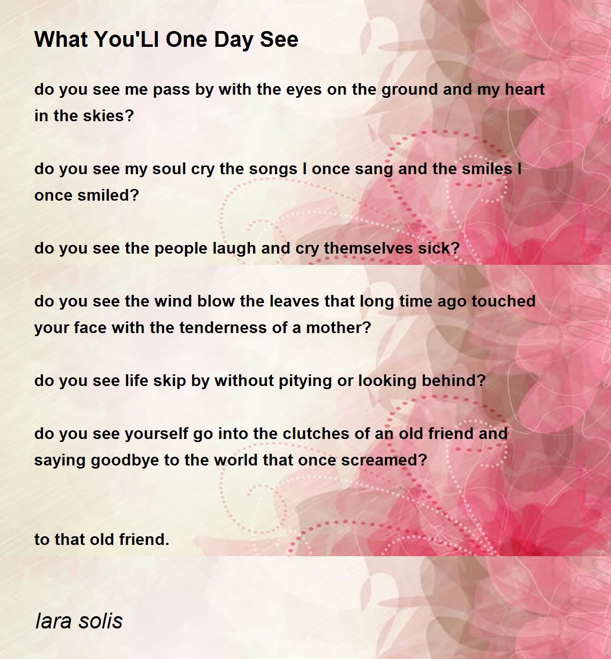 do you see yourself go into the clutches of an old friend and saying goodbye to the world that once screamed?