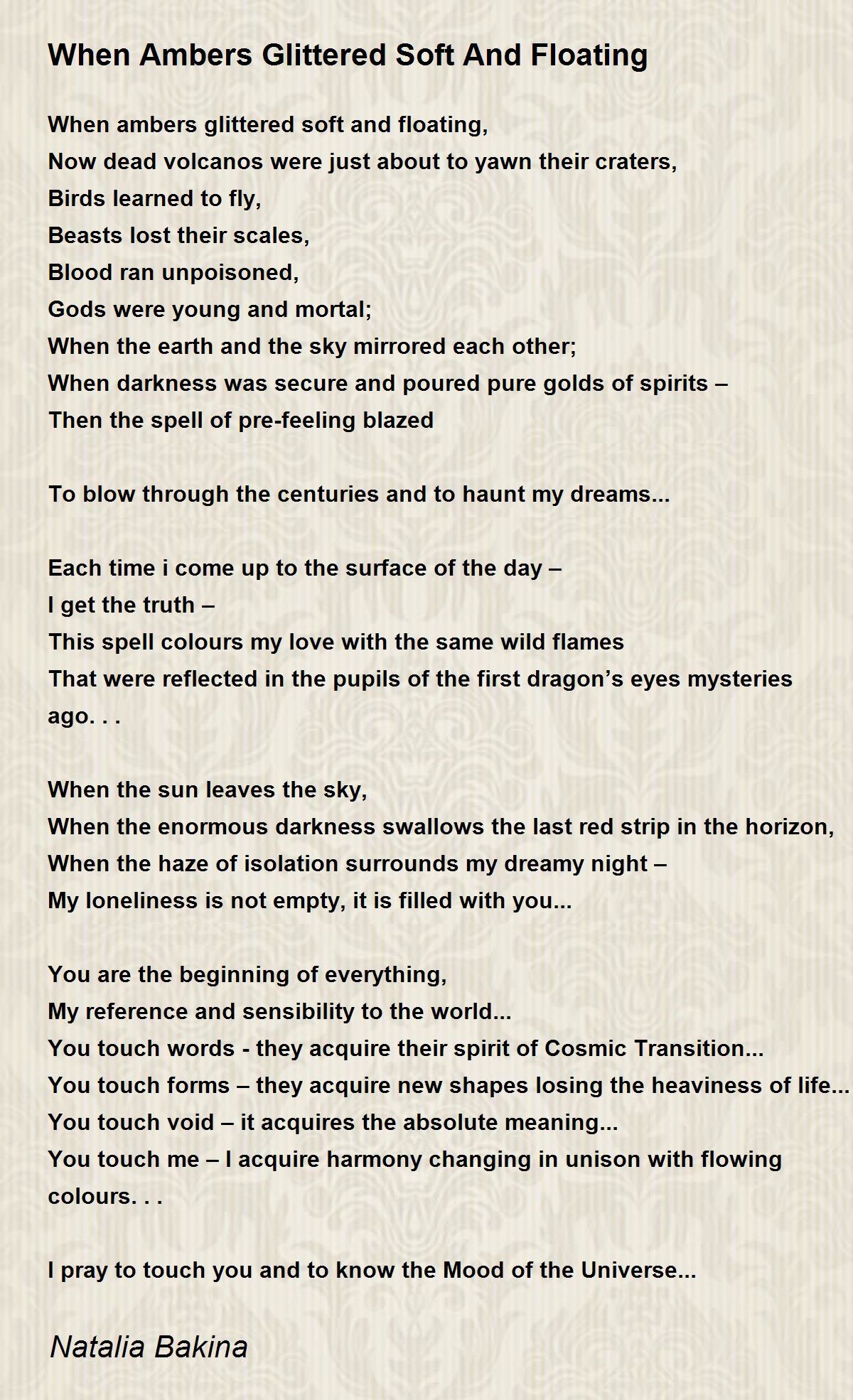 When ambers glittered soft and floating,