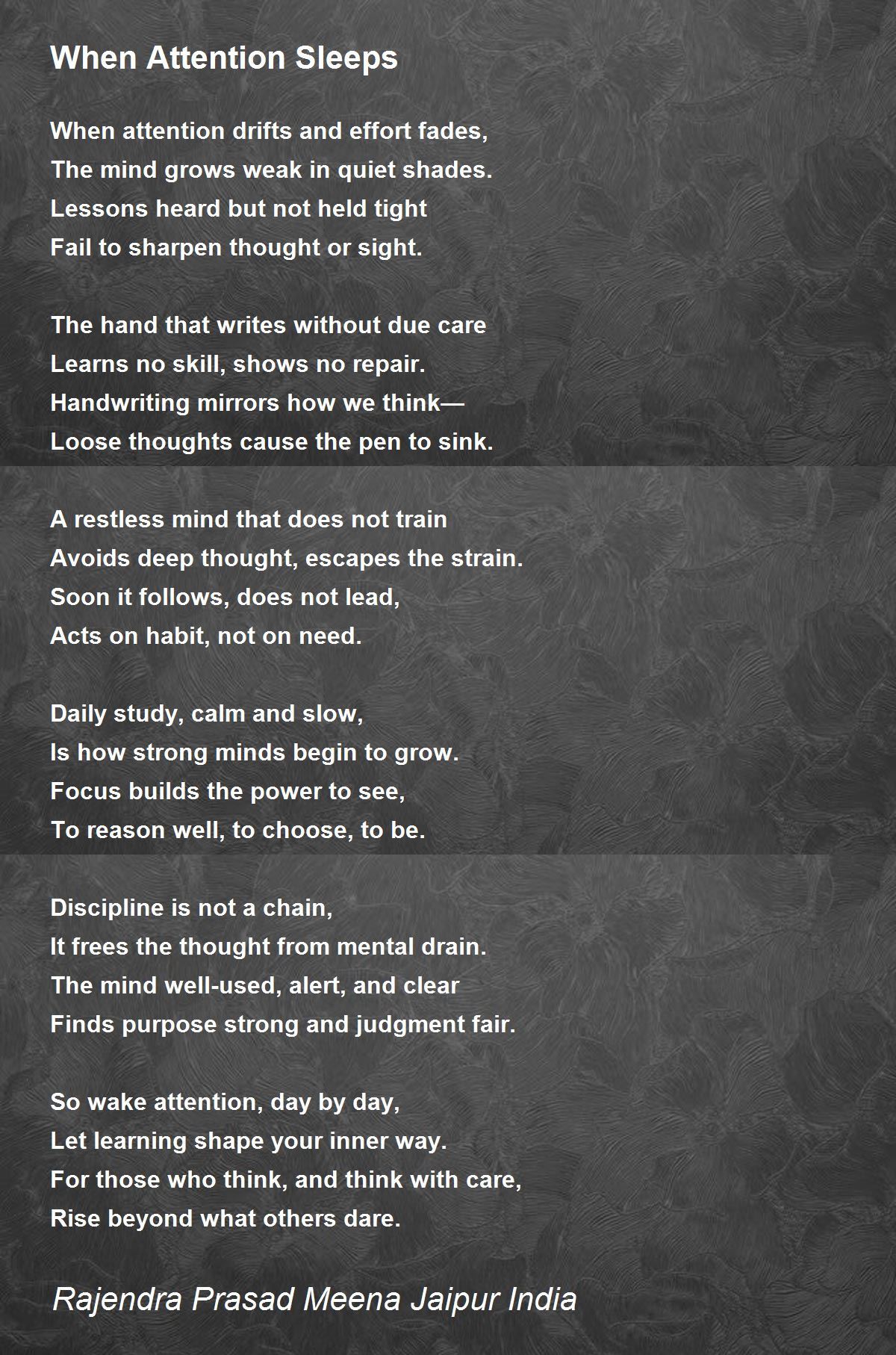 So wake attention, day by day,