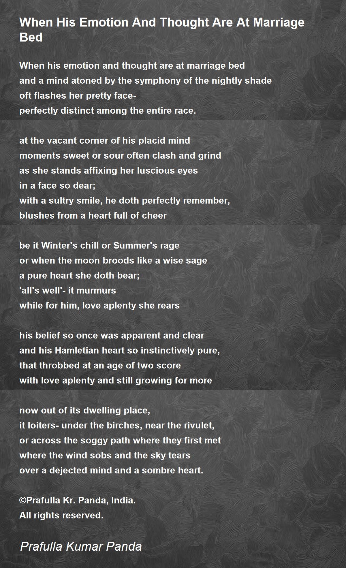 When his emotion and thought are at marriage bed