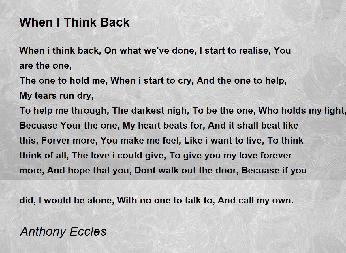 When i think back, On what we've done, I start to realise, You are the one,