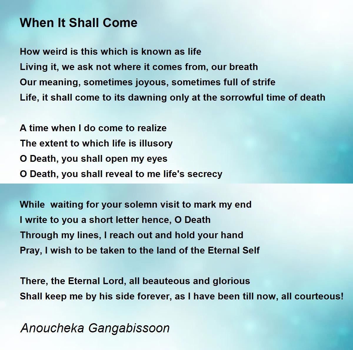 O Death, you shall open my eyes