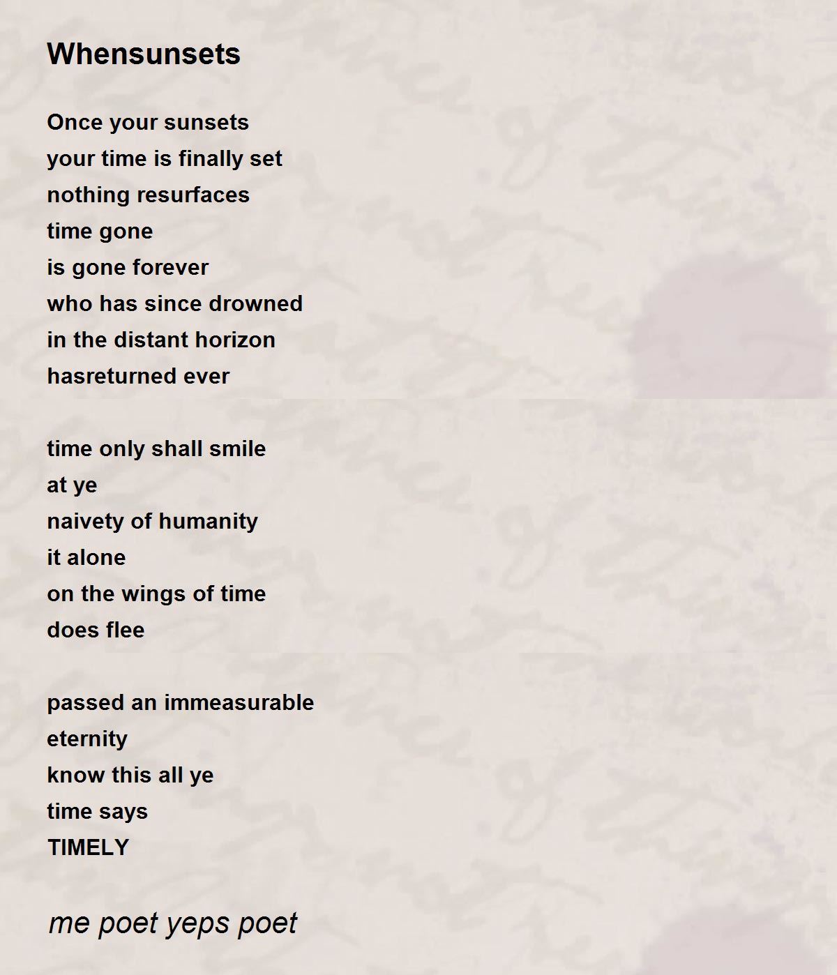 this poem has made me think there's hope in the world and that sunsets aren't the end but an everlasting reminder that life will carry on