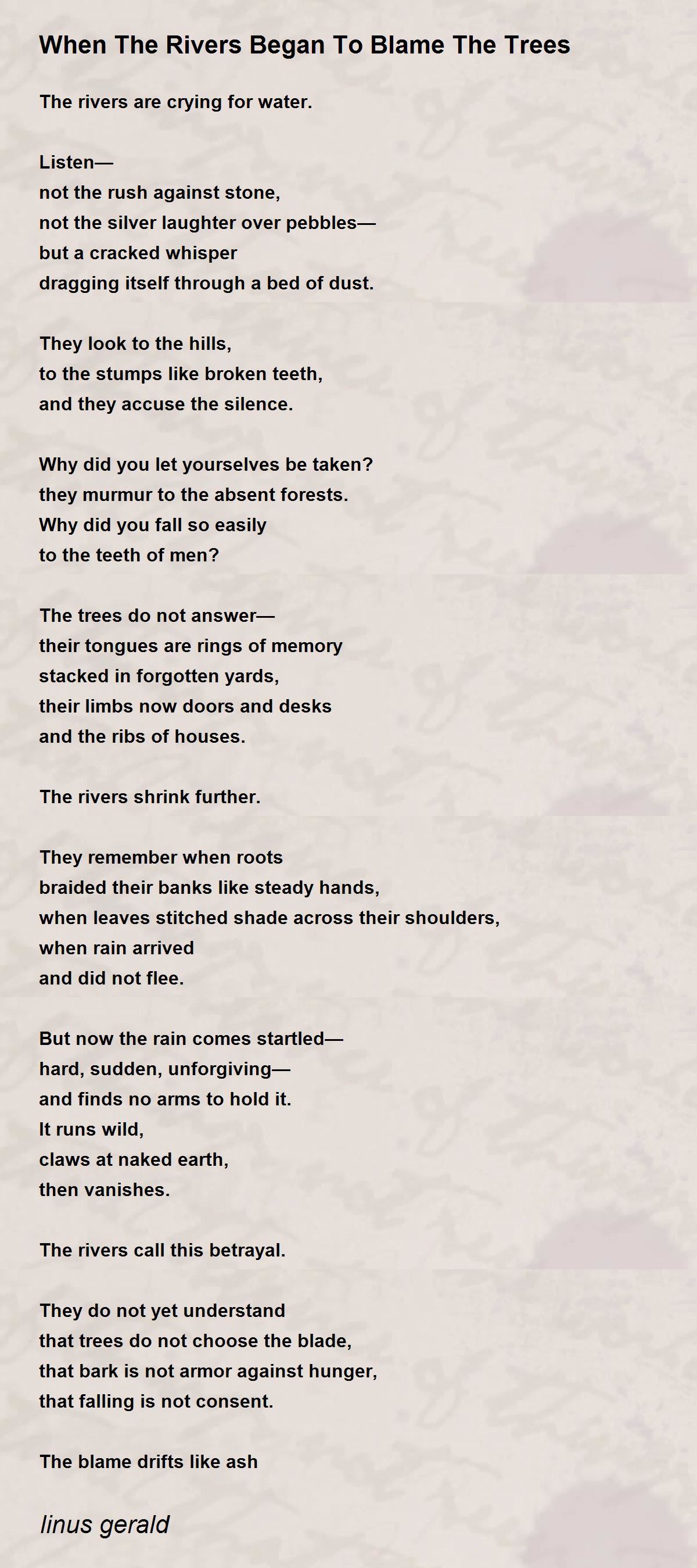 and the rivers may forgive us.