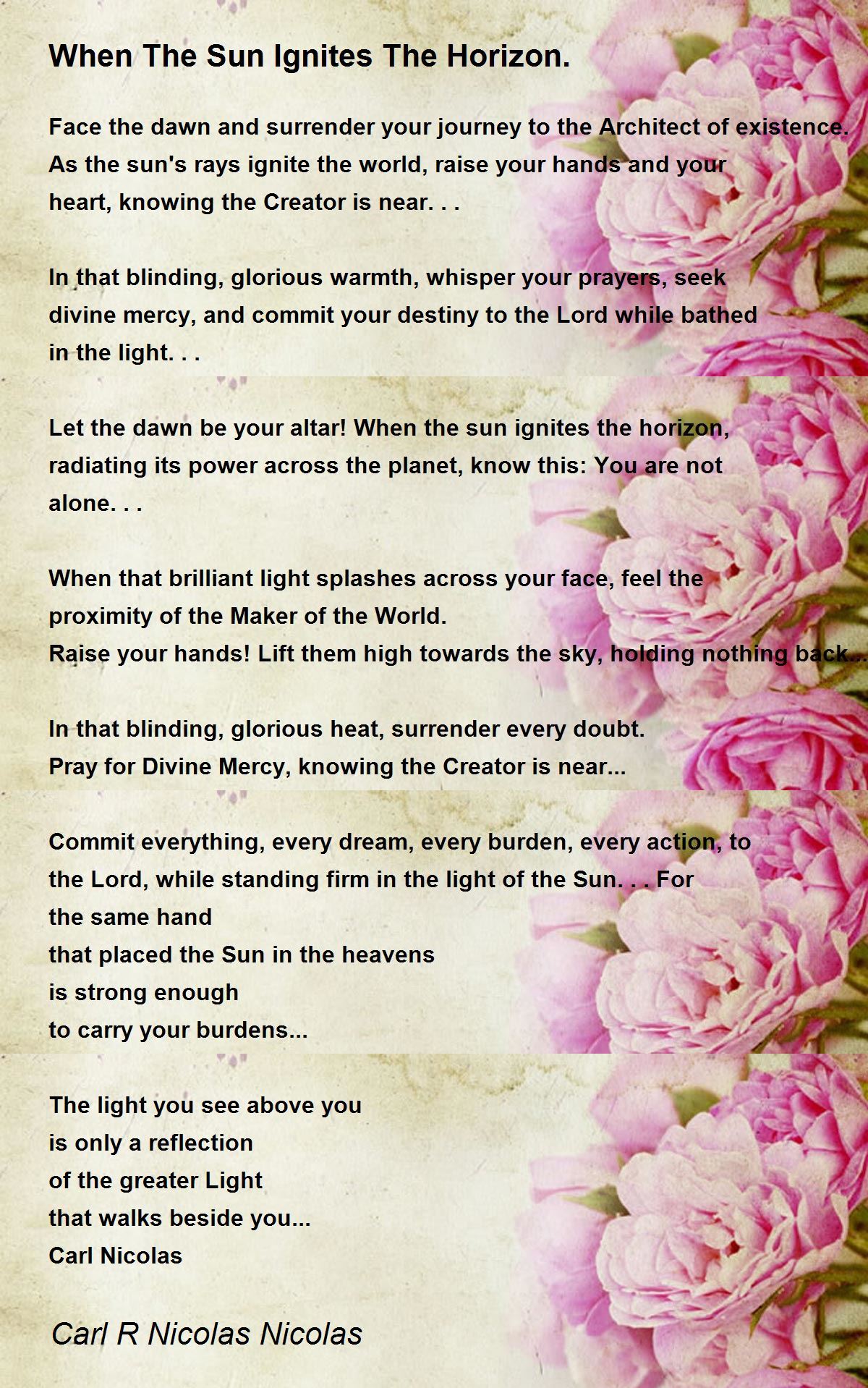 In that blinding, glorious warmth, whisper your prayers, seek divine mercy, and commit your destiny to the Lord while bathed in the light...