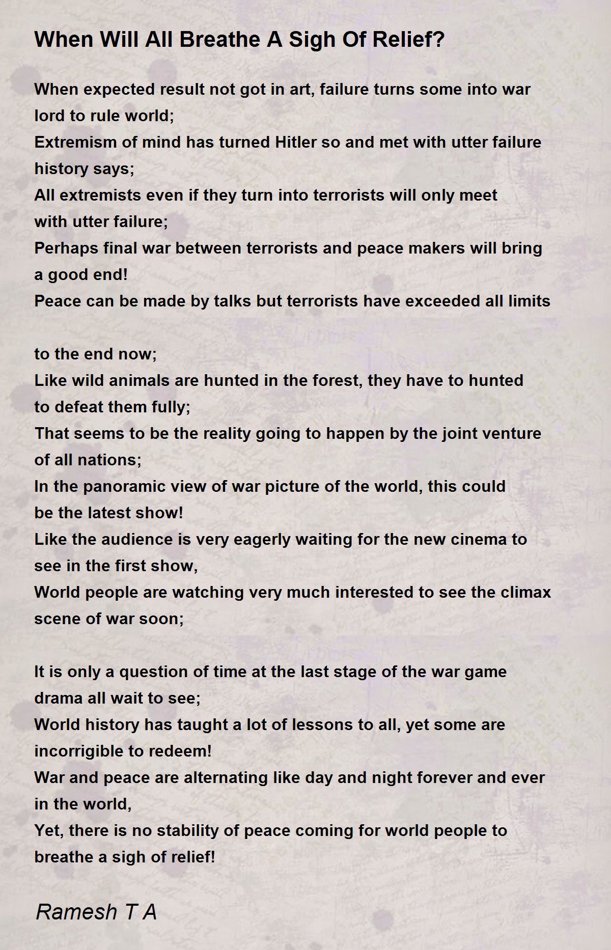 Yet, there is no stability of peace coming for world people to breathe a sigh of relief!
