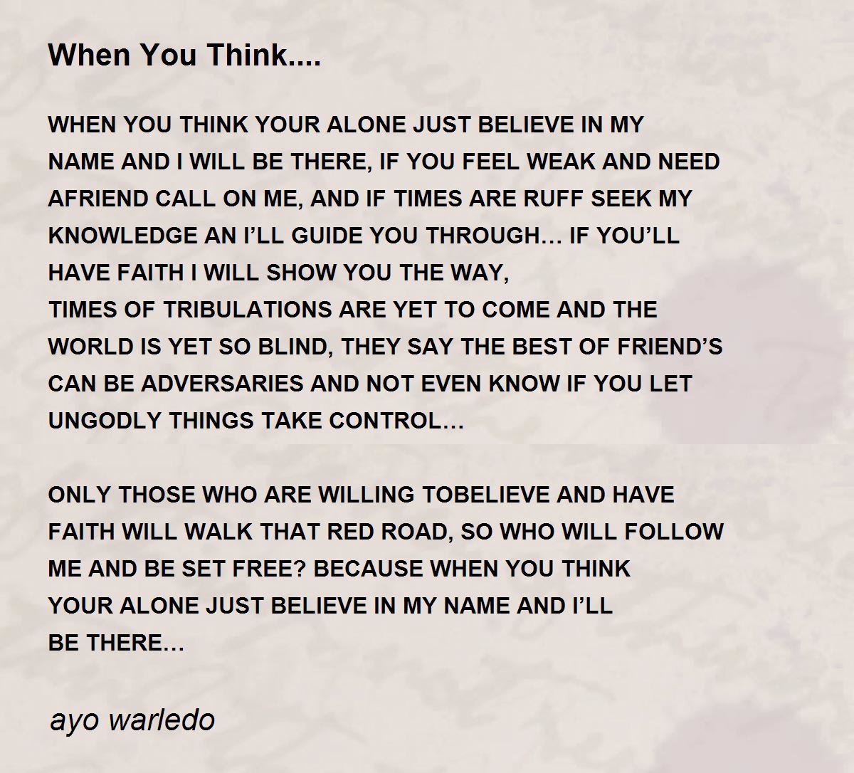 WHEN YOU THINK YOUR ALONE JUST BELIEVE IN MY