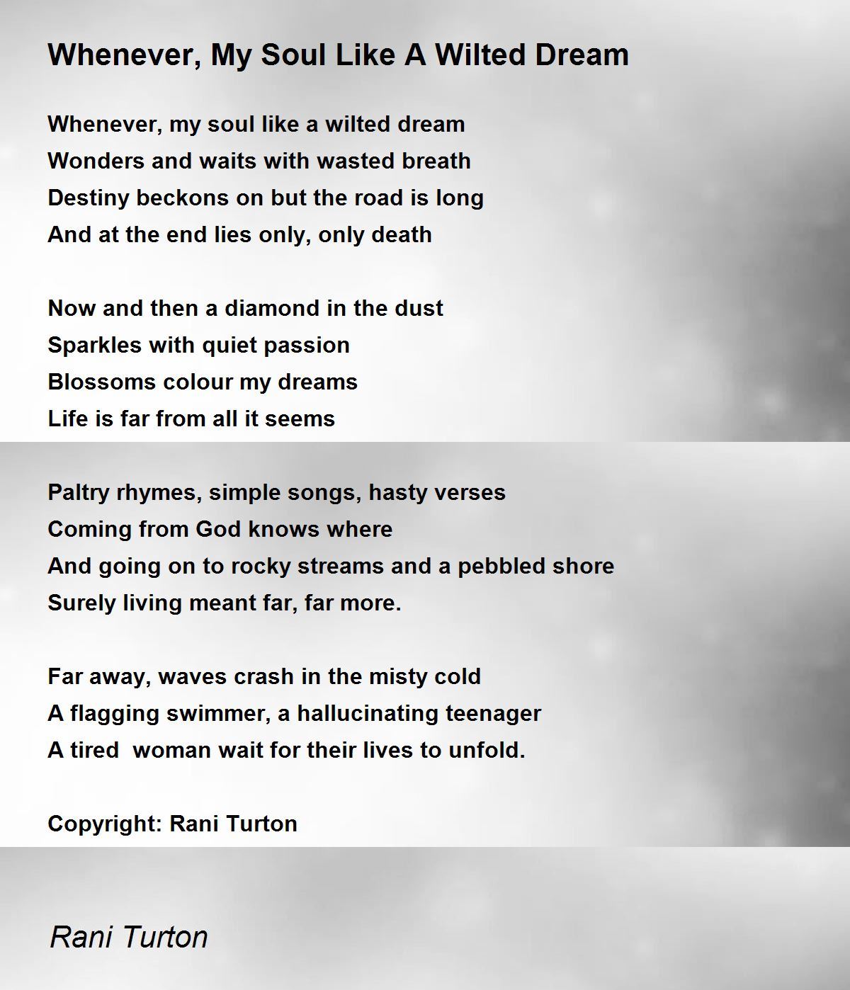 The title and first line stretch out to be read. There is really beautiful imagery in your poem. The last stanza said it all for me. Lovely! Top marks! Karin Anderson