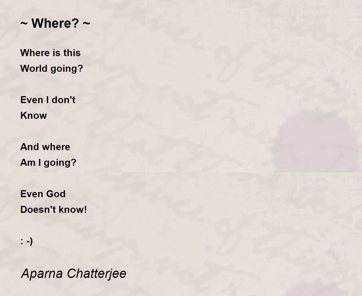 Where is this World going? Even I don't Know And where Am I going? Even God Doesn't know! : -)