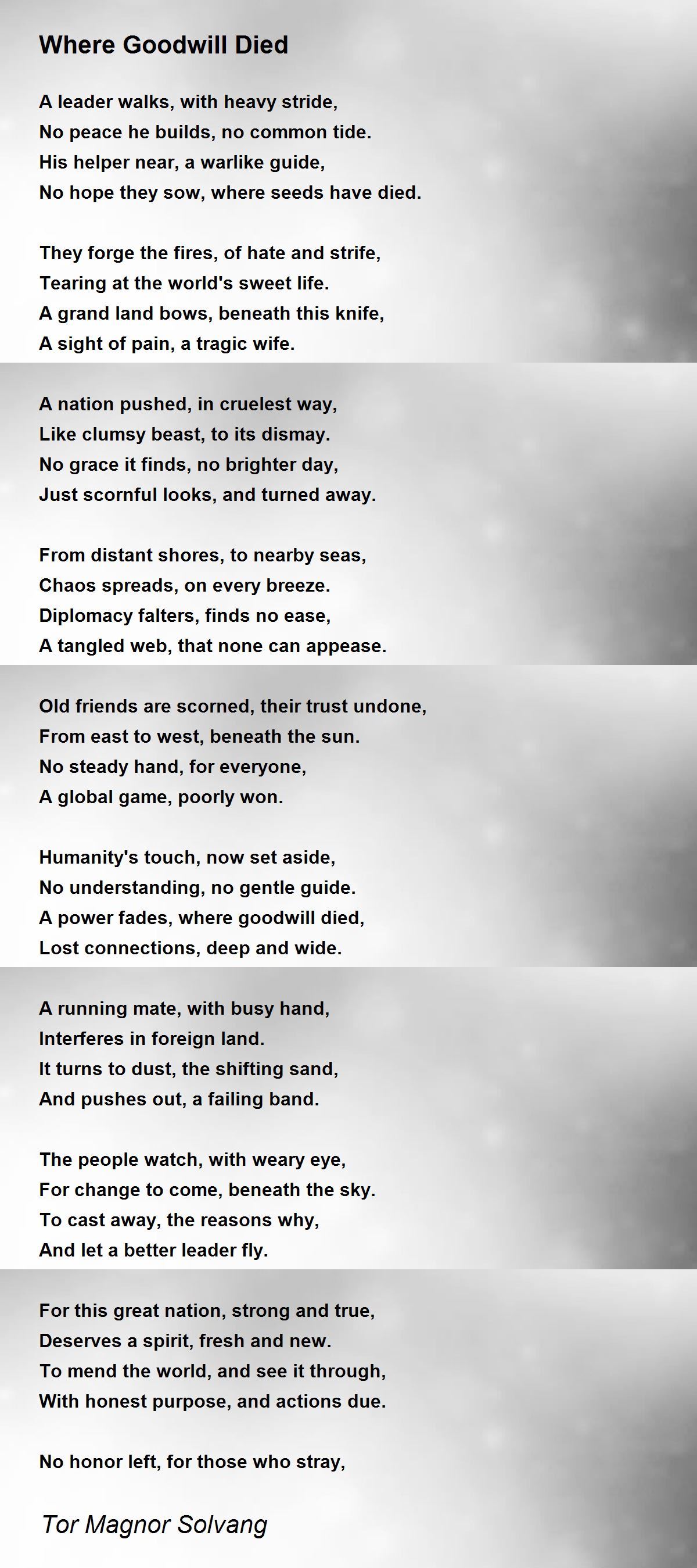 A power fades, where goodwill died,