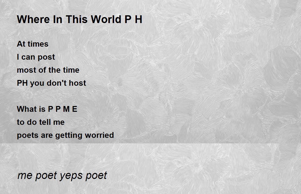 At times I can post most of the time PH you don't host What is P P M E to do tell me poets are getting worried