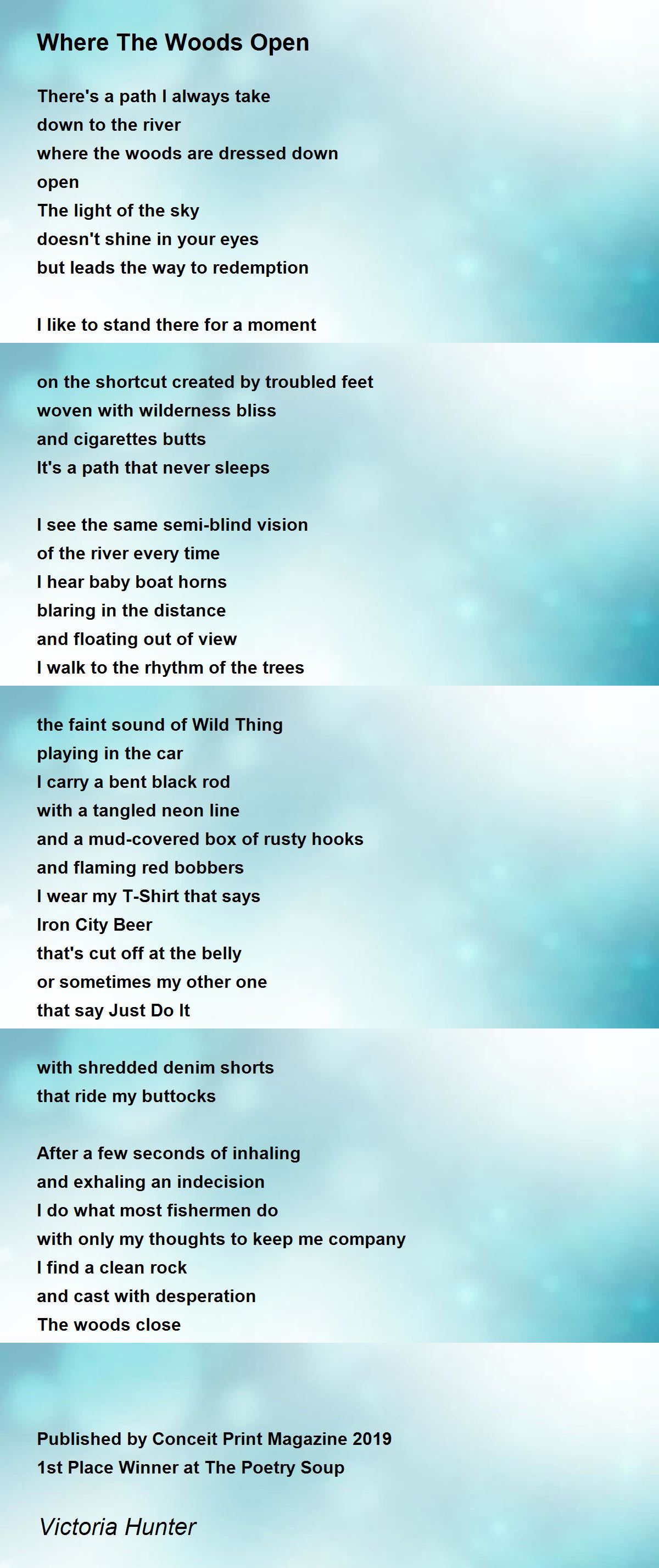 Write comment. Such a nice poem, Victoria Hunter. Read my poem, Love and Iust. Thanks