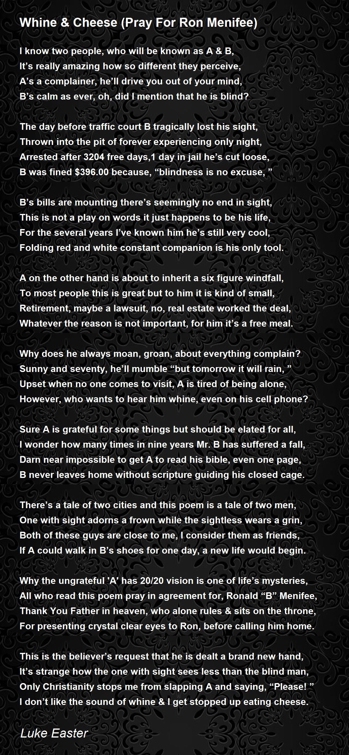 I don’t like the sound of whine & I get stopped up eating cheese.