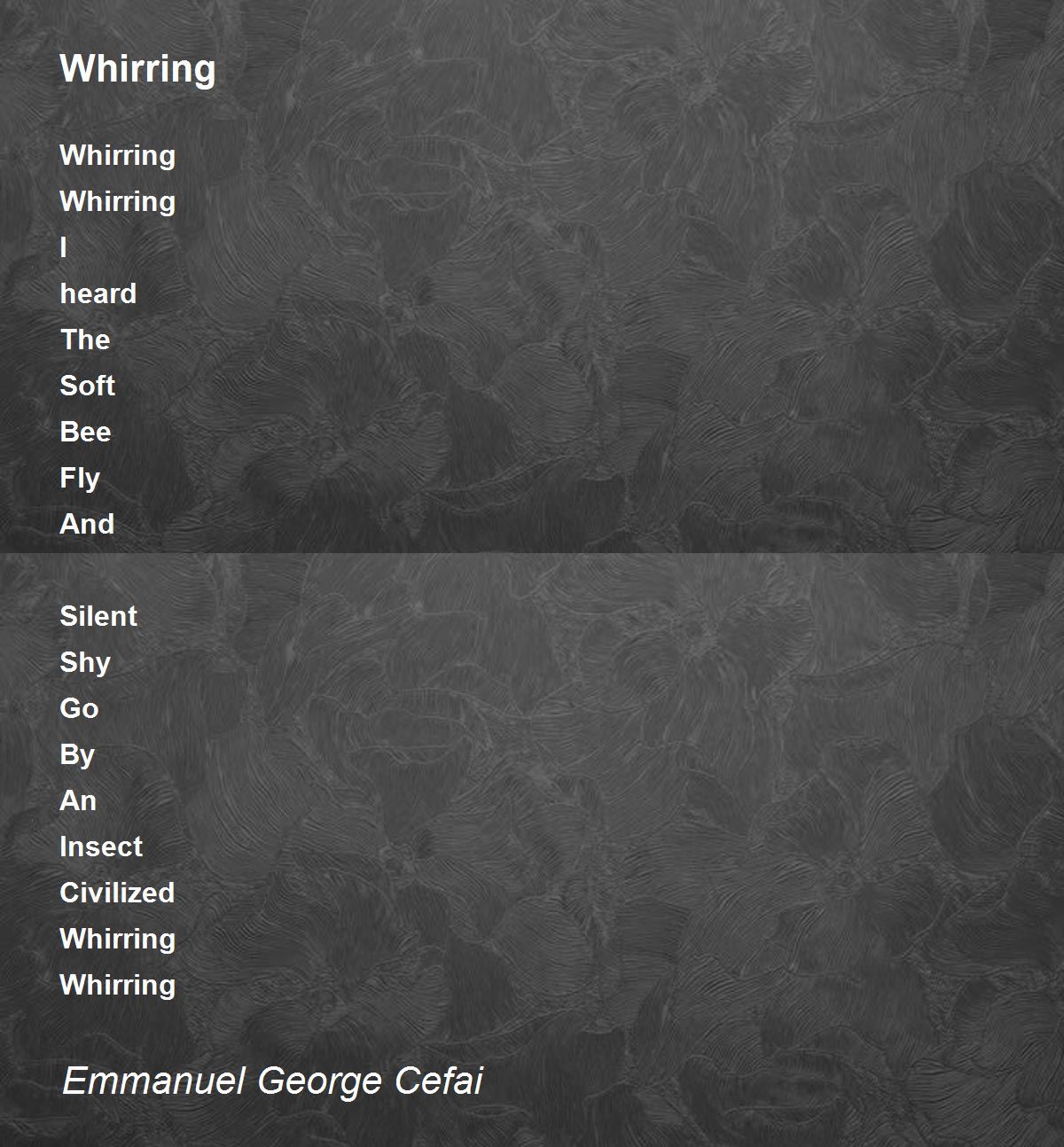 Whirring Whirring I heard The Soft Bee Fly And Silent Shy Go By An Insect Civilized Whirring Whirring