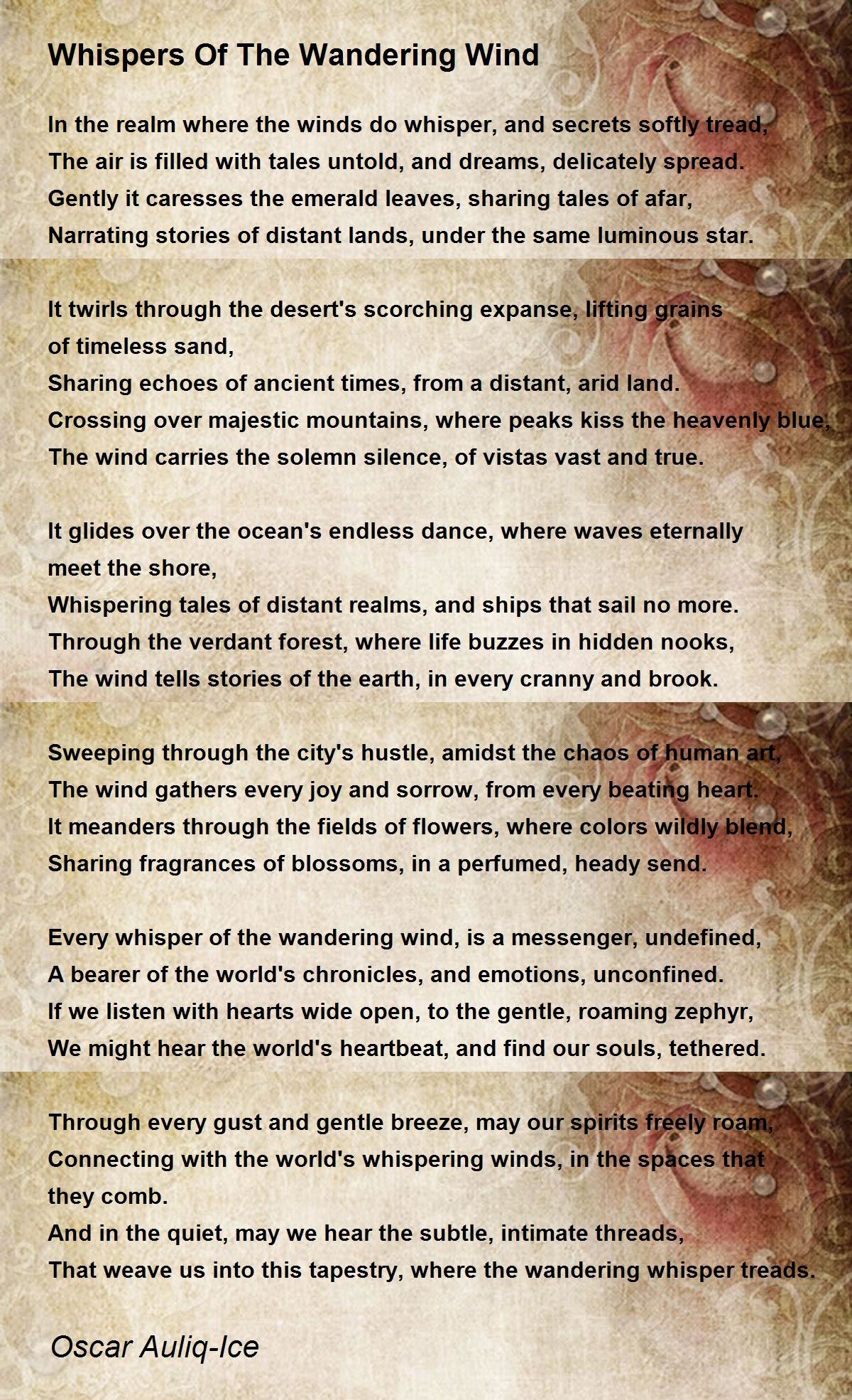Every whisper of the wandering wind, is a messenger, undefined,