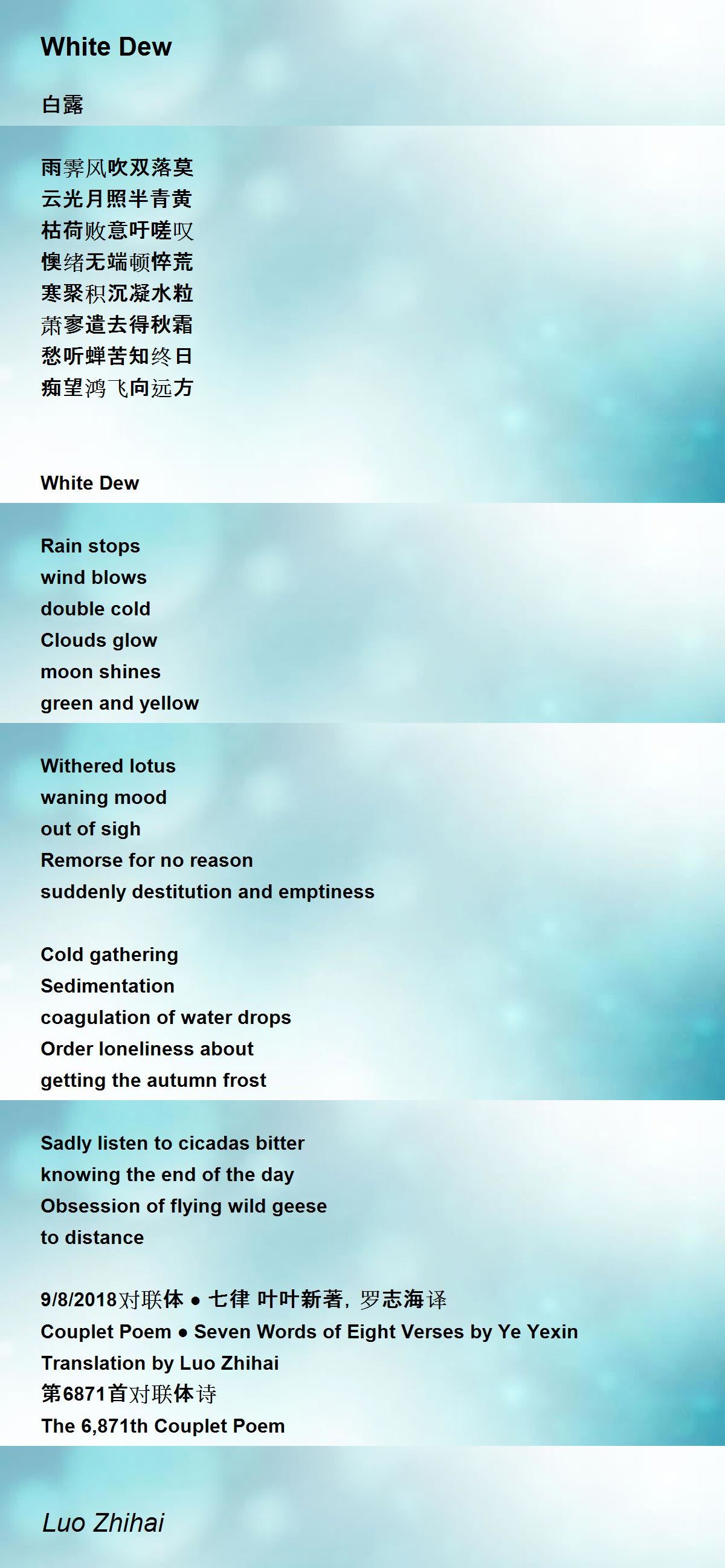 9/8/2018对联体 ● 七律 叶叶新著,罗志海译